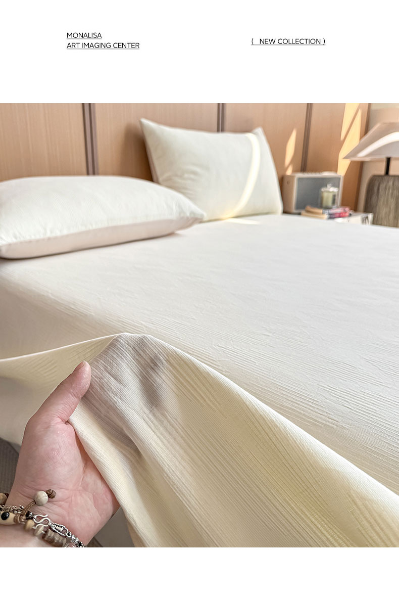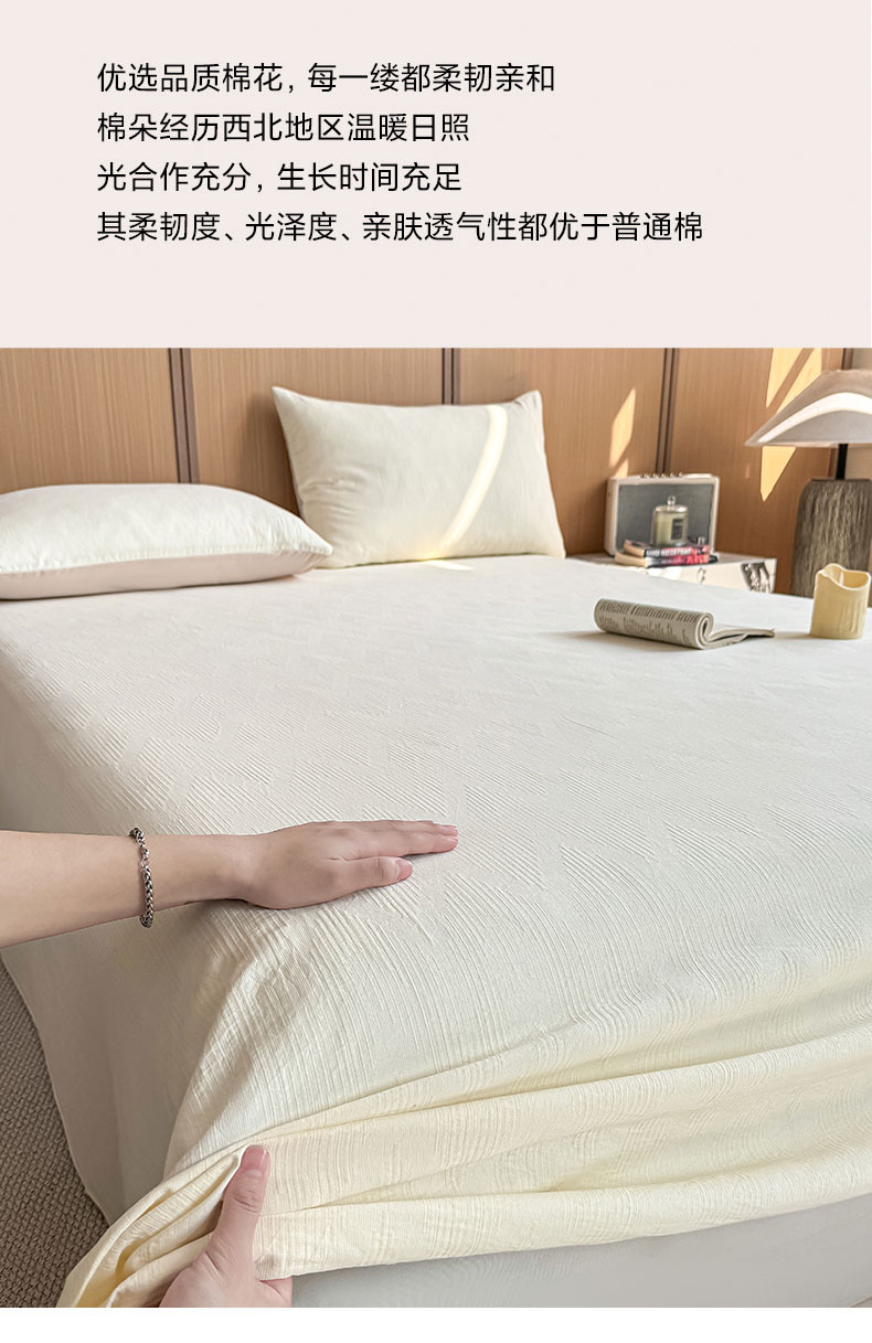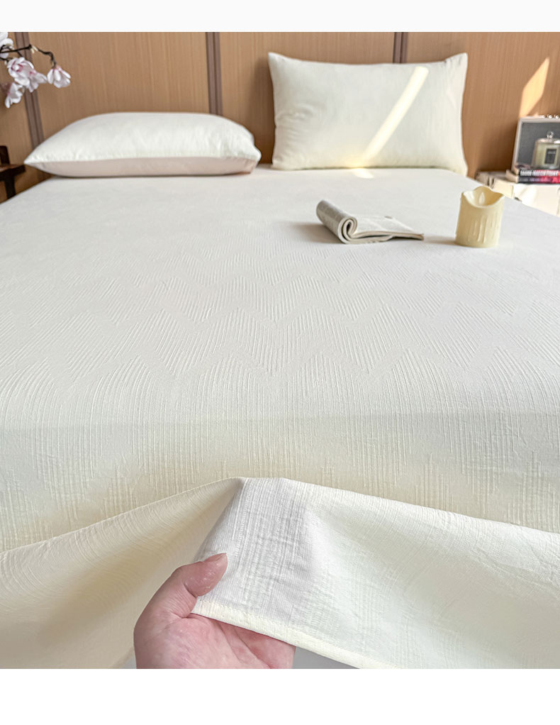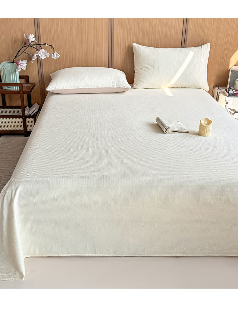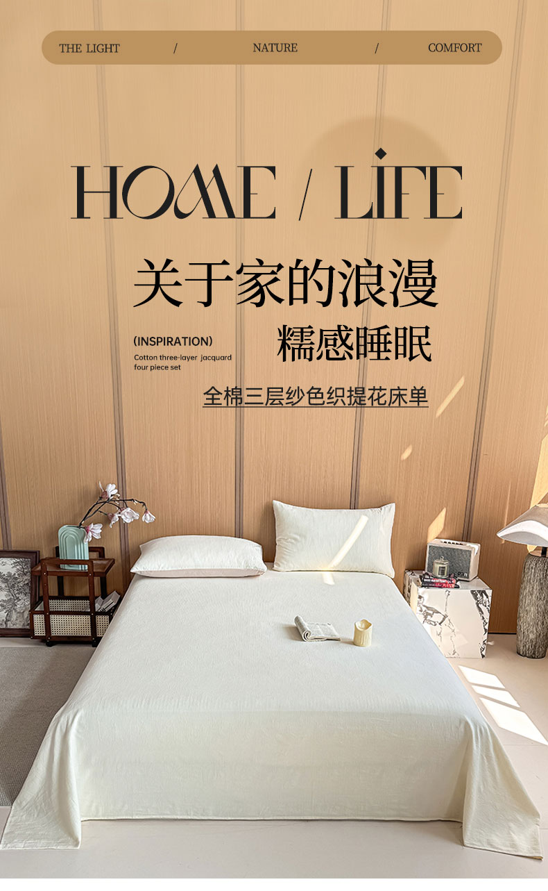 • 91家纺网 家纺一手货源 找家纺 灰鲸 2026新款全棉简约三层纱色织提花单品床单 影韵-杏仁奶霜