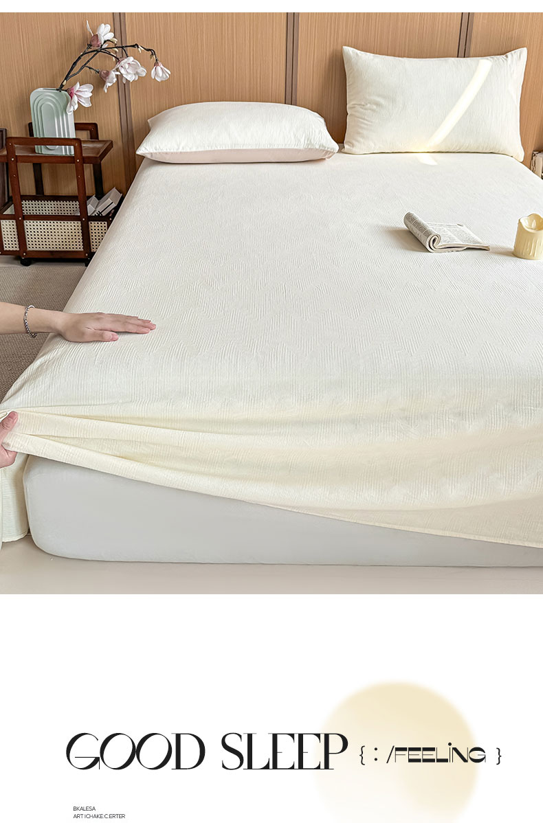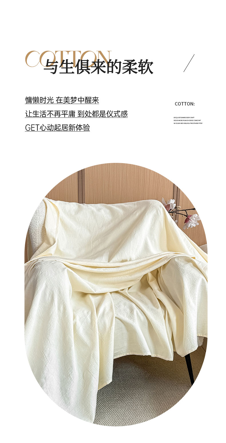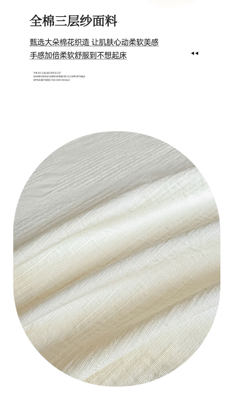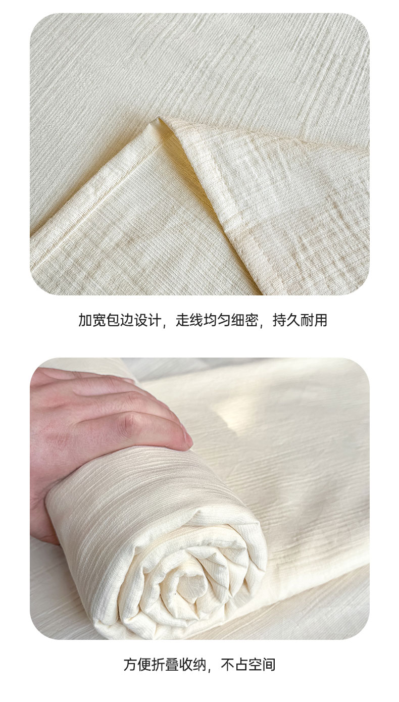• 91家纺网 家纺一手货源 找家纺 灰鲸 2026新款全棉简约三层纱色织提花单品床单 影韵-杏仁奶霜