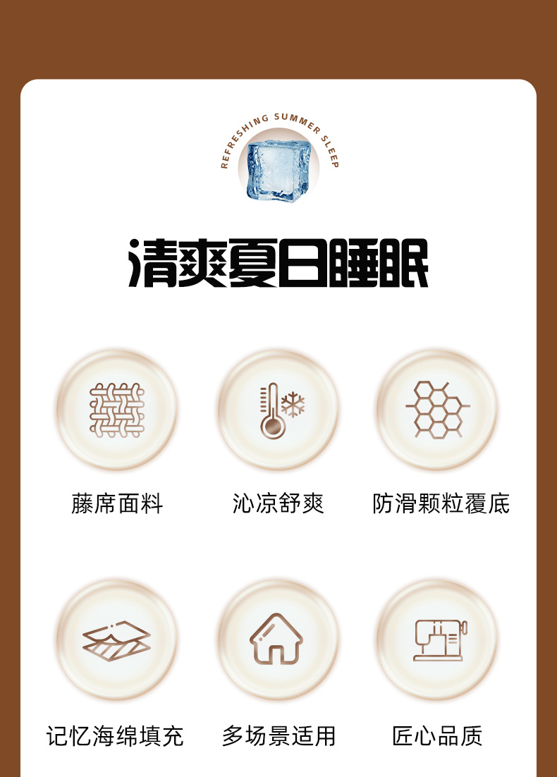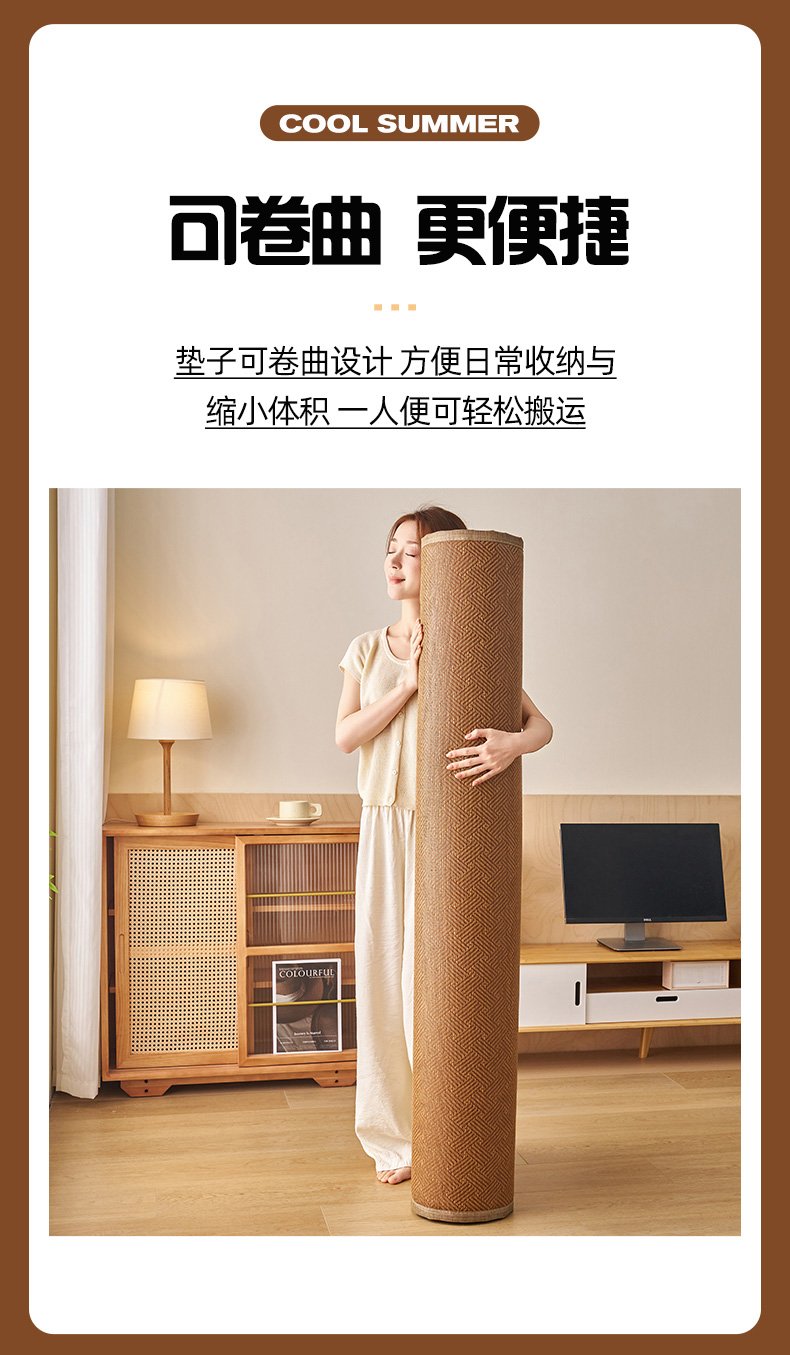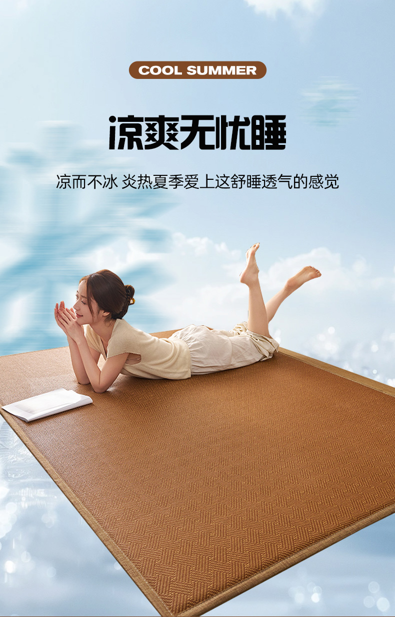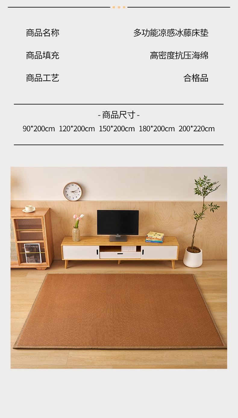 (总)畅畅家纺 2026新款多功能亲肤舒适凉感冰藤床垫藤席地垫-厚度1.5cm,节节高,经典方格,九方块,玉小格