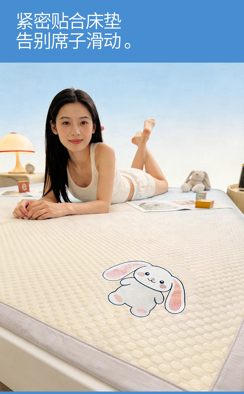 当前位置: 91家纺网 > 商品网购 > 床上用品 > 凉席 > 凉席套件 > 雯豆家纺 2026夏季新款绣花豆豆压花凉席三件套加厚三明治平铺席子纯色卡通凉席 大耳朵兔凉席款-米黄