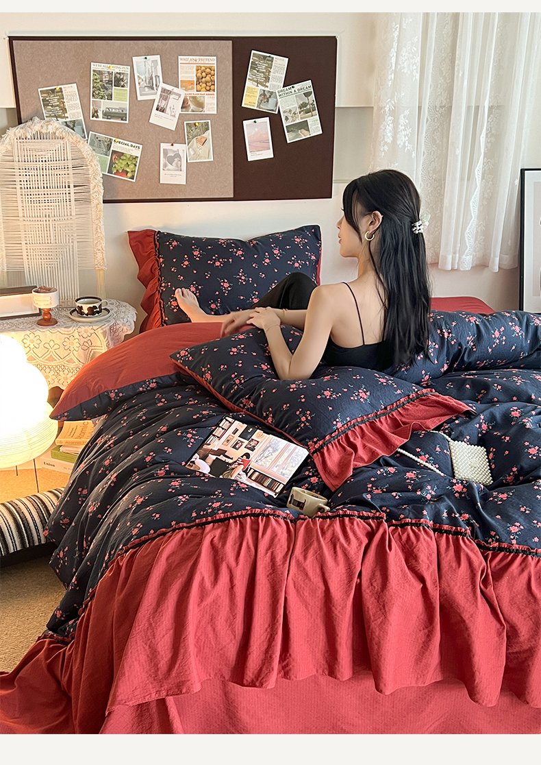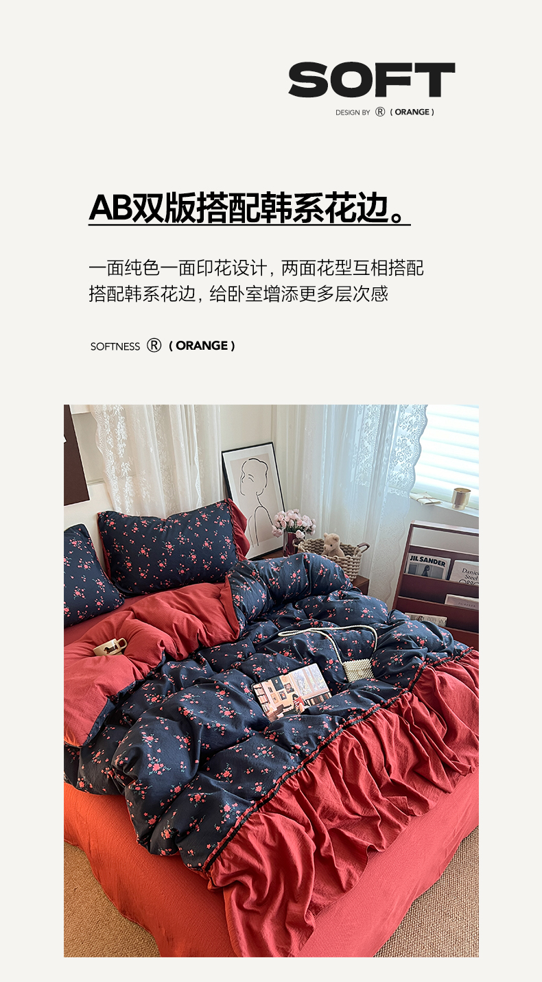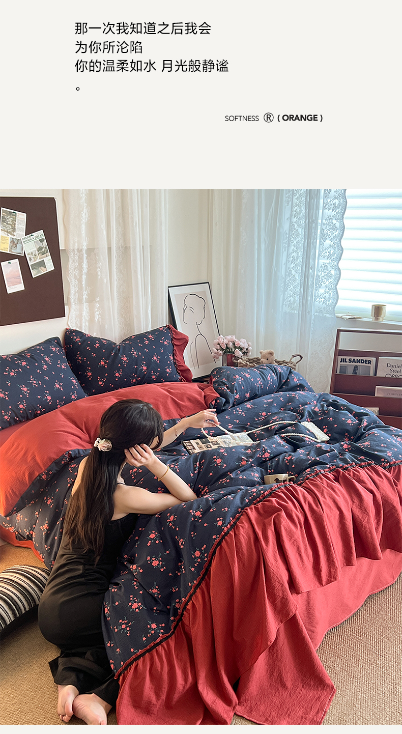 (总)晨曦家纺 2026新款韩系法式慵懒氛围感印花泡芙花边四件套