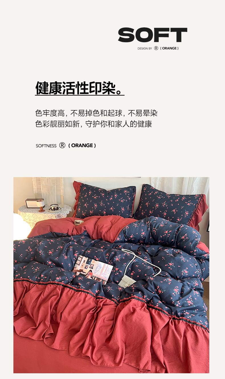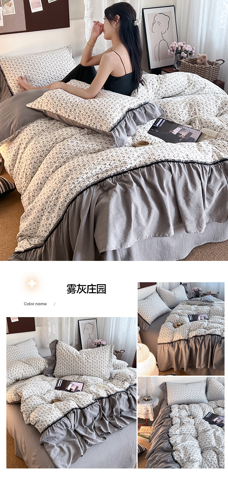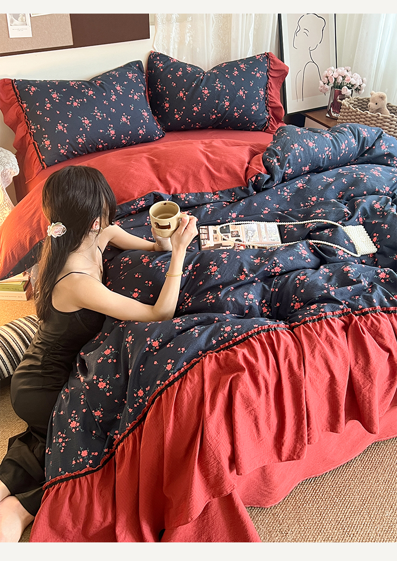 商品名称:(总)晨曦家纺 2026新款韩系法式慵懒氛围感印花泡芙花边四件套