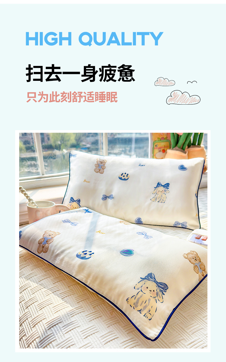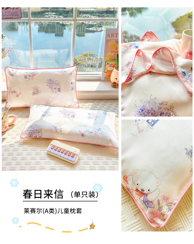 商品名称:姝辰 2026新款莱赛尔嵌绳卡通印花枕套儿童夏季凉感冰丝枕套幼儿园乳胶枕套枕罩 春日来信