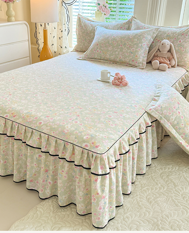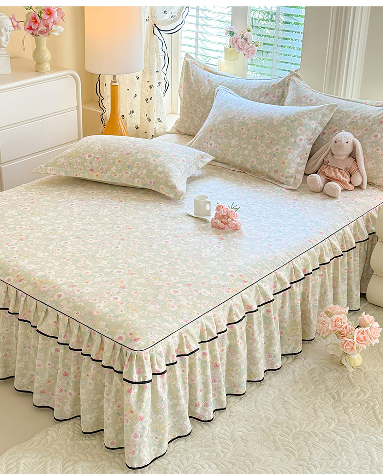 • 91家纺网 家纺一手货源 找家纺 优家居 2026新款A类水洗棉床裙单件三件套皱皱纱韩版公主风花边床罩直播爆款外贸定制 海棠花颂
