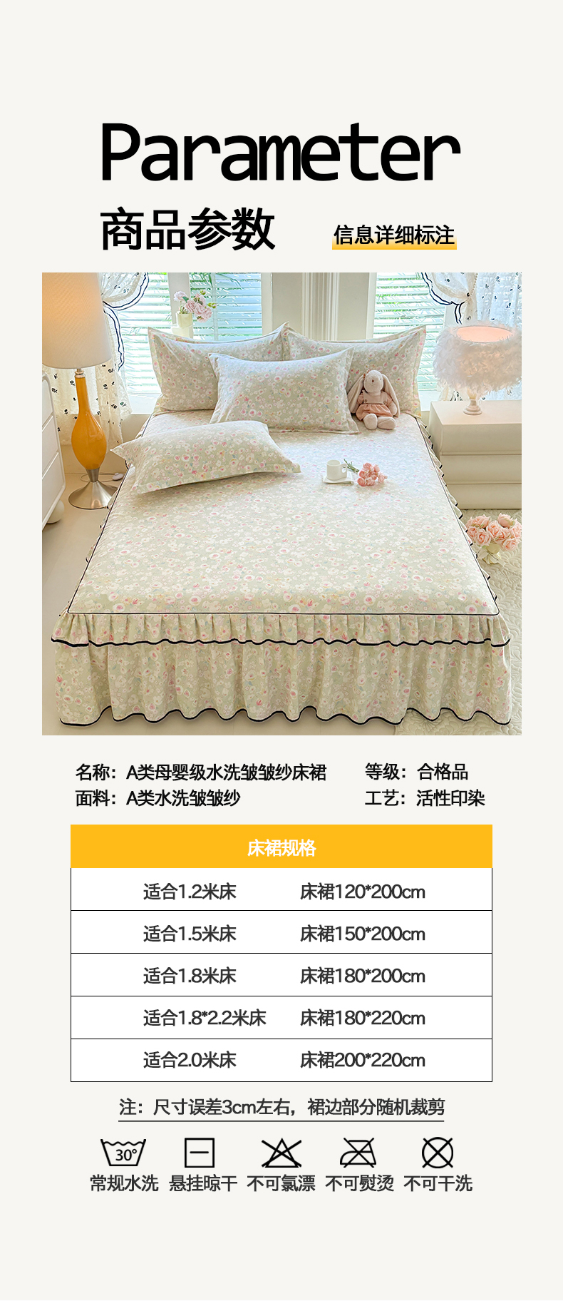 • 91家纺网 家纺一手货源 找家纺 (总)优家居 2026新款A类水洗棉床裙单件三件套皱皱纱韩版公主风花边床罩直播爆款外贸定制,木槿花,一口葡萄,欧若拉,小苍蓝,梦华录,海棠花颂,爱心蝴蝶结,巴宝格-咖,豹纹-咖,蝶舞芳华,繁花似锦,粉色猫猫,粉雾结语,花花田园,莓好时光,秘园絮语,陌上花开,紫雾花园