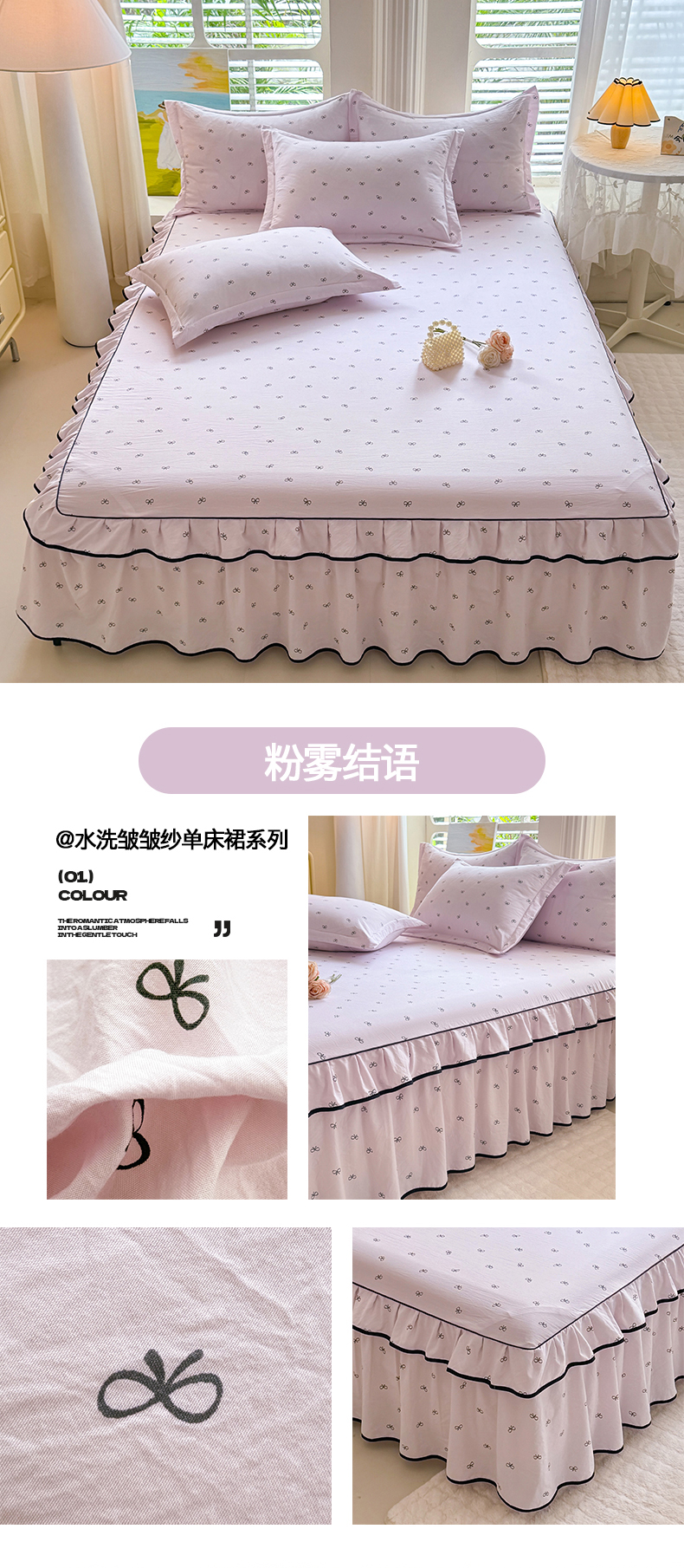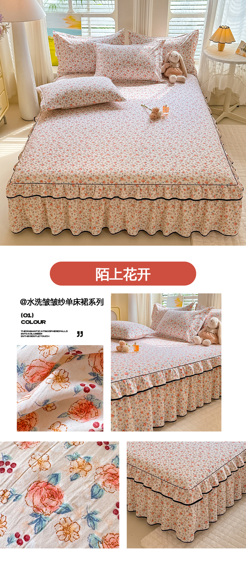 (总)优家居 2026新款A类水洗棉床裙单件三件套皱皱纱韩版公主风花边床罩直播爆款外贸定制,木槿花,一口葡萄,欧若拉,小苍蓝,梦华录,海棠花颂,爱心蝴蝶结,巴宝格-咖,豹纹-咖,蝶舞芳华,繁花似锦,粉色猫猫,粉雾结语,花花田园,莓好时光,秘园絮语,陌上花开,紫雾花园