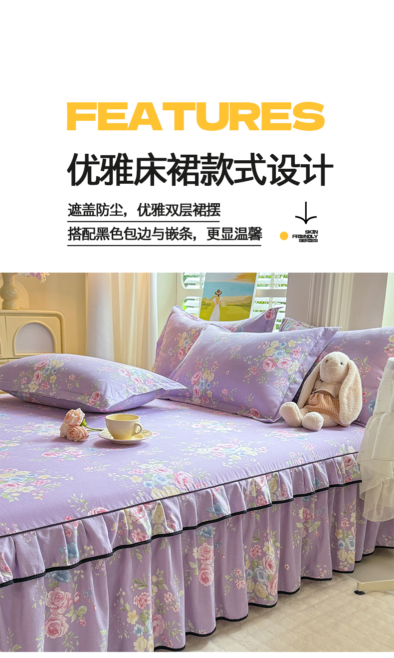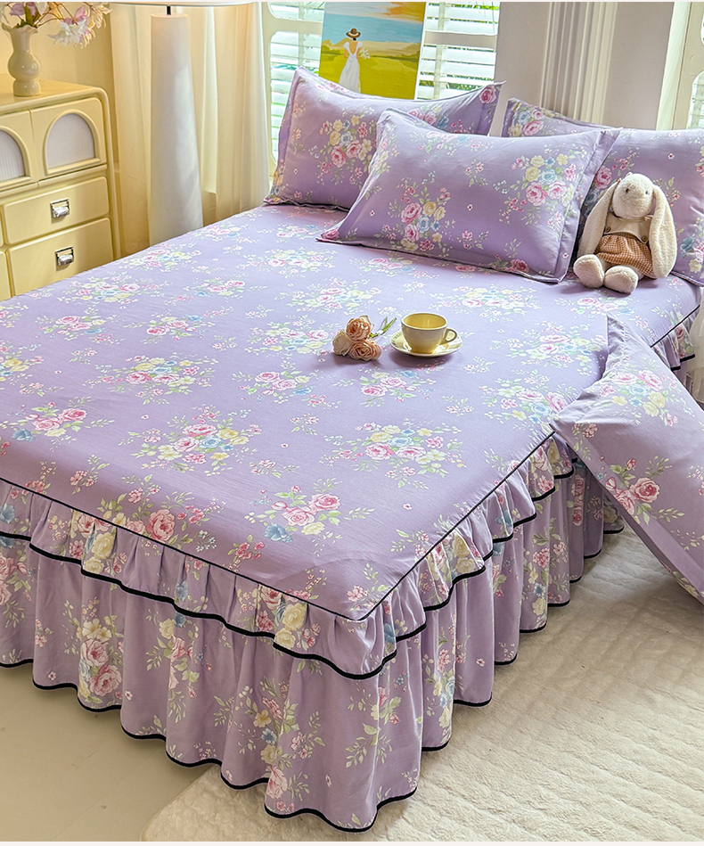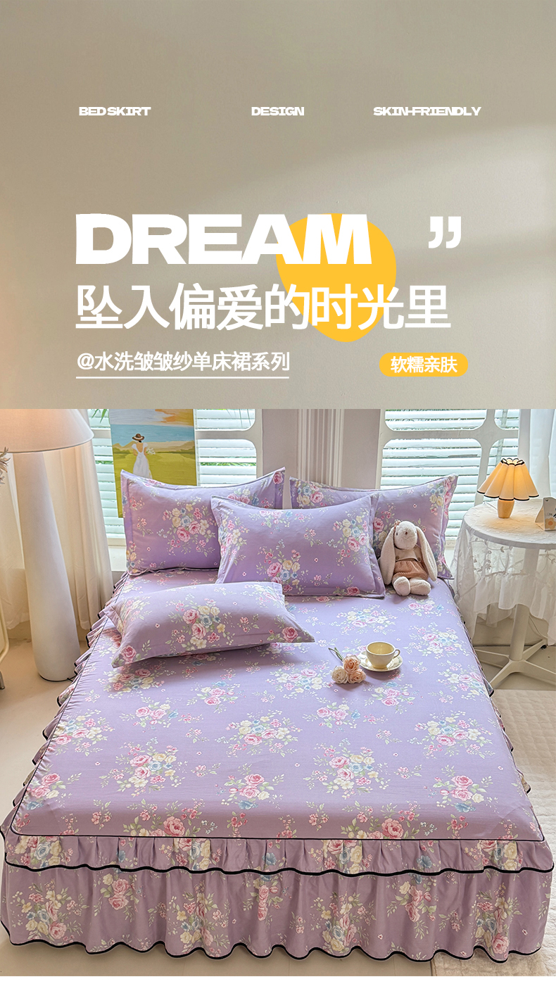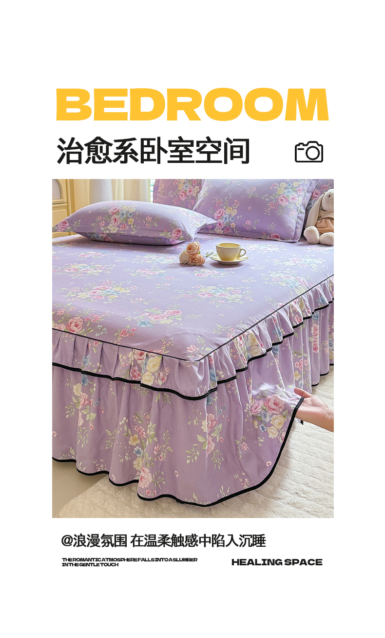 (总)优家居 2026新款A类水洗棉床裙单件三件套皱皱纱韩版公主风花边床罩直播爆款外贸定制,木槿花,一口葡萄,欧若拉,小苍蓝,梦华录,海棠花颂,爱心蝴蝶结,巴宝格-咖,豹纹-咖,蝶舞芳华,繁花似锦,粉色猫猫,粉雾结语,花花田园,莓好时光,秘园絮语,陌上花开,紫雾花园
