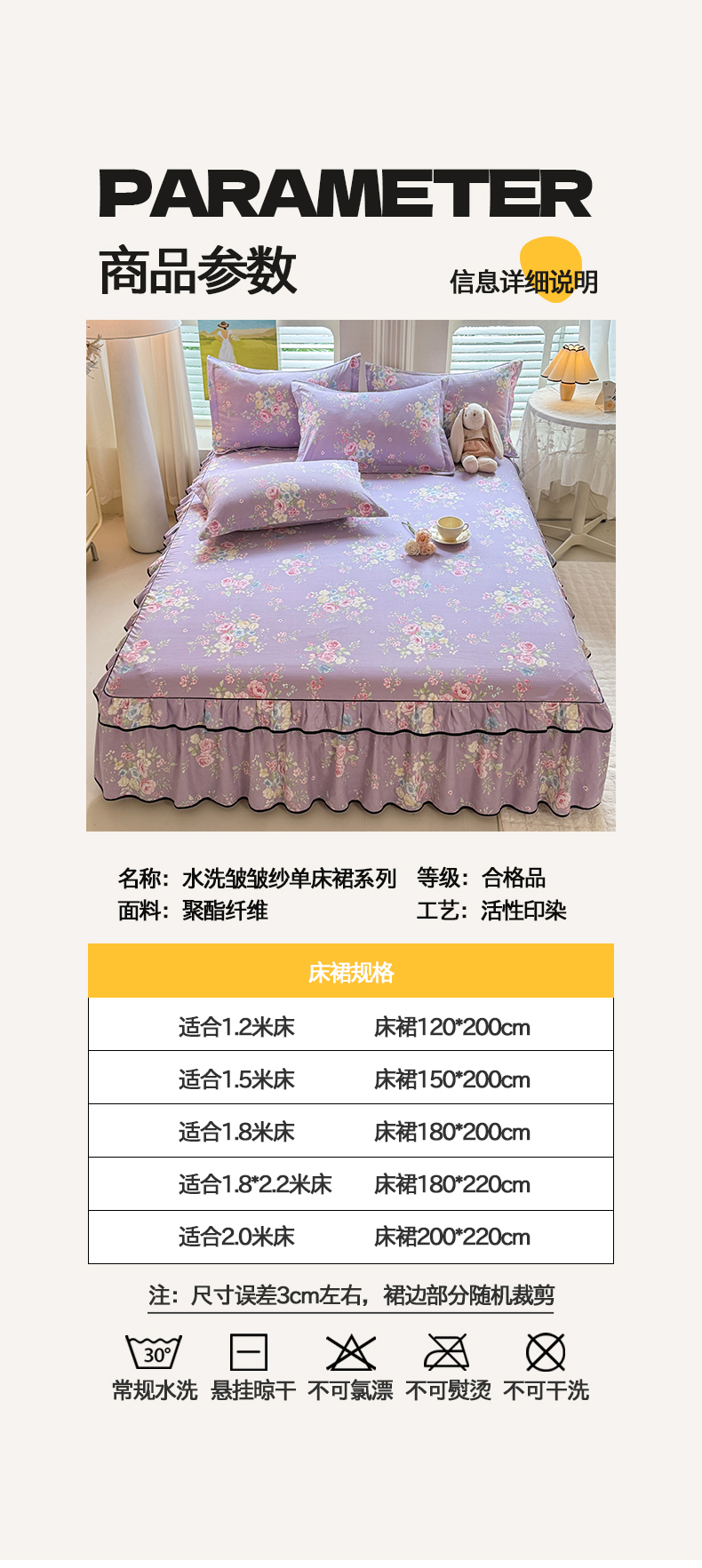 • 91家纺网 家纺一手货源 找家纺 (总)优家居 2026新款A类水洗棉床裙单件三件套皱皱纱韩版公主风花边床罩直播爆款外贸定制,木槿花,一口葡萄,欧若拉,小苍蓝,梦华录,海棠花颂,爱心蝴蝶结,巴宝格-咖,豹纹-咖,蝶舞芳华,繁花似锦,粉色猫猫,粉雾结语,花花田园,莓好时光,秘园絮语,陌上花开,紫雾花园