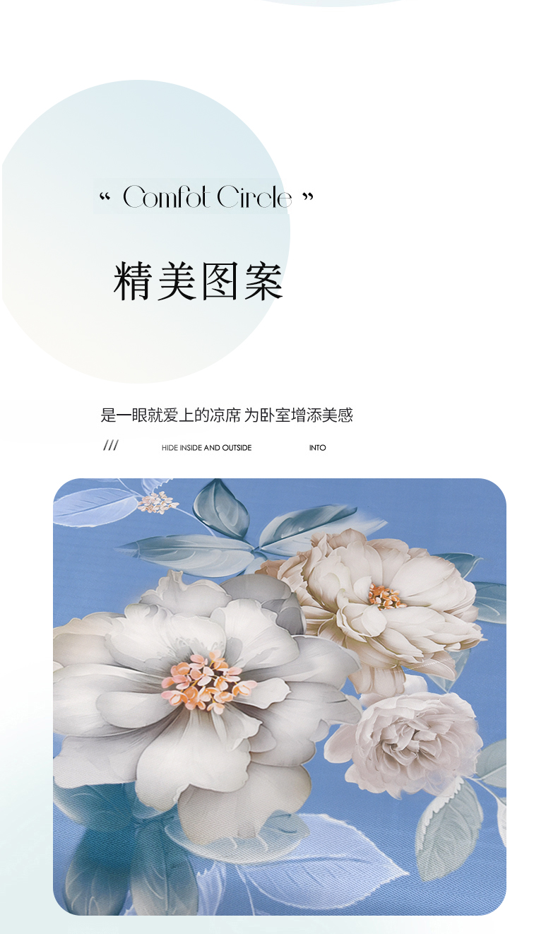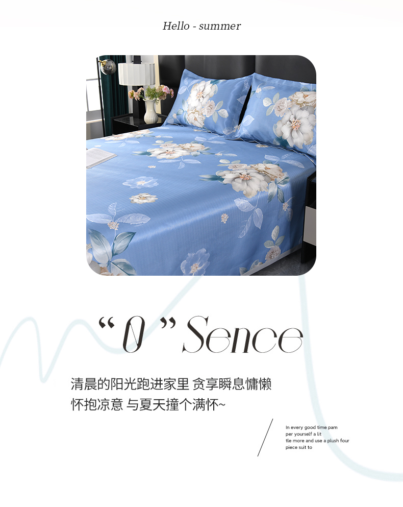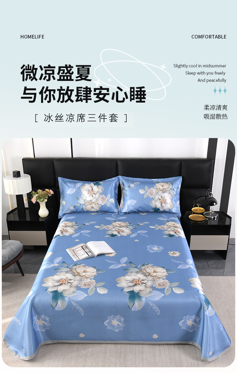 商品名称:绒品壹家家纺 2026新款立体数码印花凉感丝冰丝席软凉席席子三件套 晨园幽香