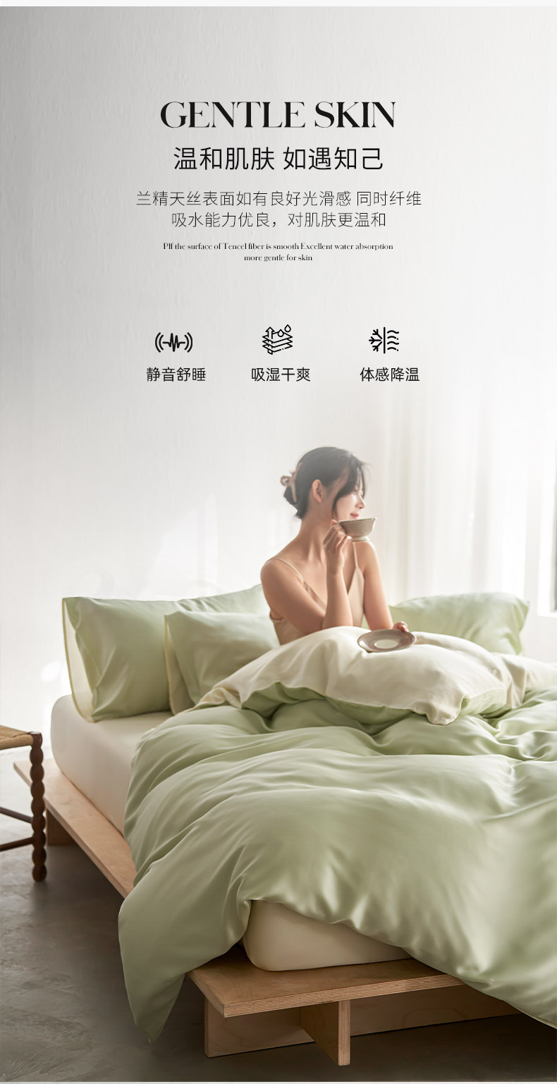 当前位置: 91家纺网 > 商品网购 > 床品套件 > 四件套 > 莱赛尔四件套 > 轩和家居 2026新款60支奥地利兰精天丝四件套 若草色+伊丽莎白