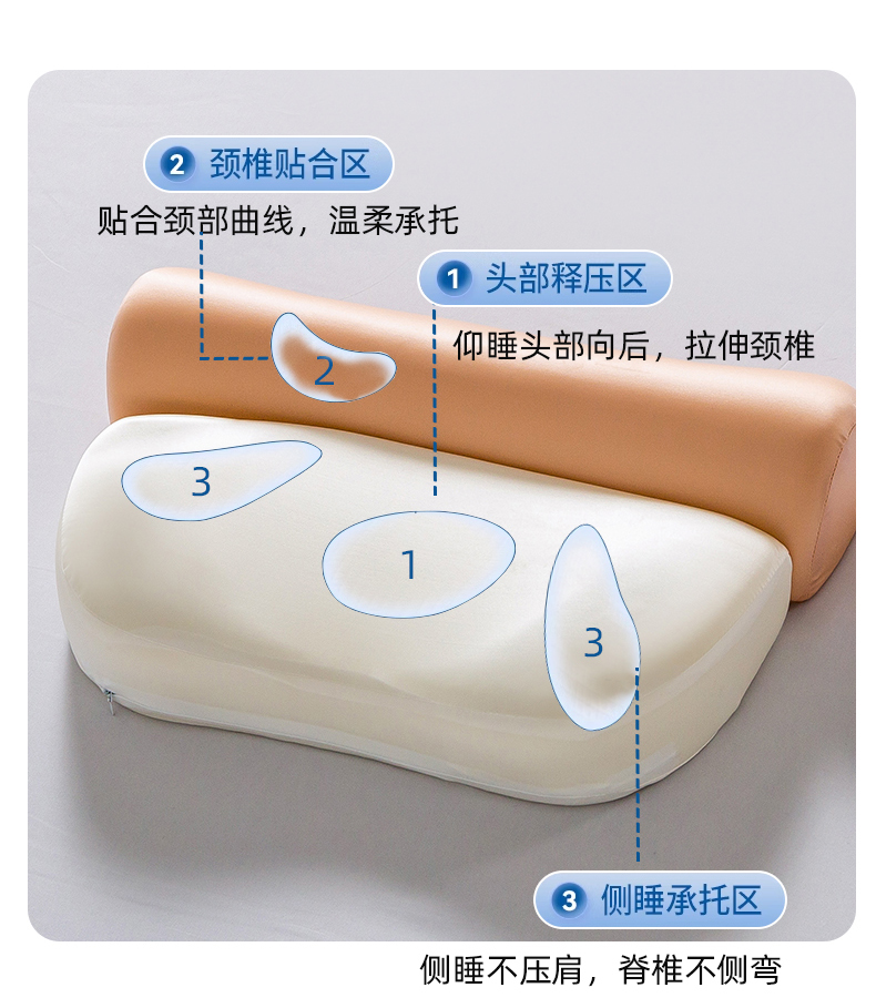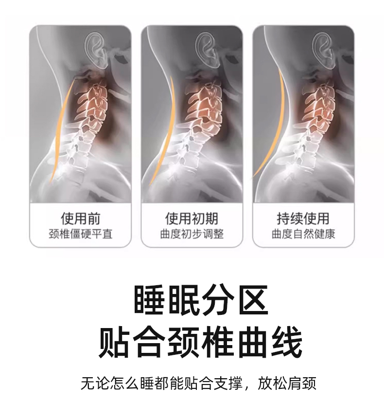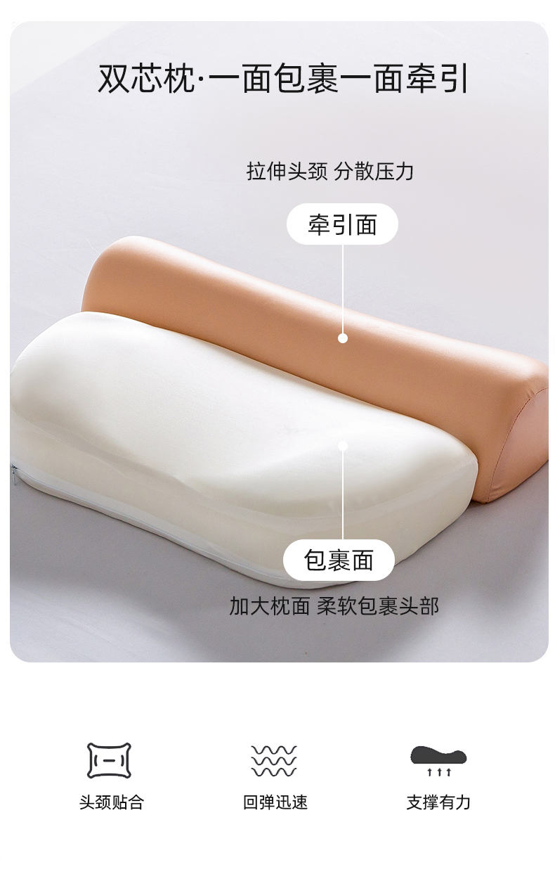 (总)七夜居 2026新款牵引枕记忆枕芯凉感零压深睡按摩枕芯枕头,牵引枕-白玉,牵引枕-灰白