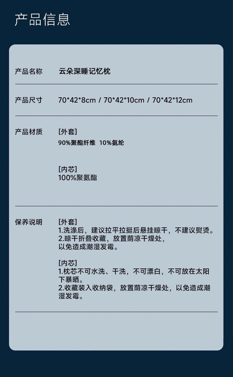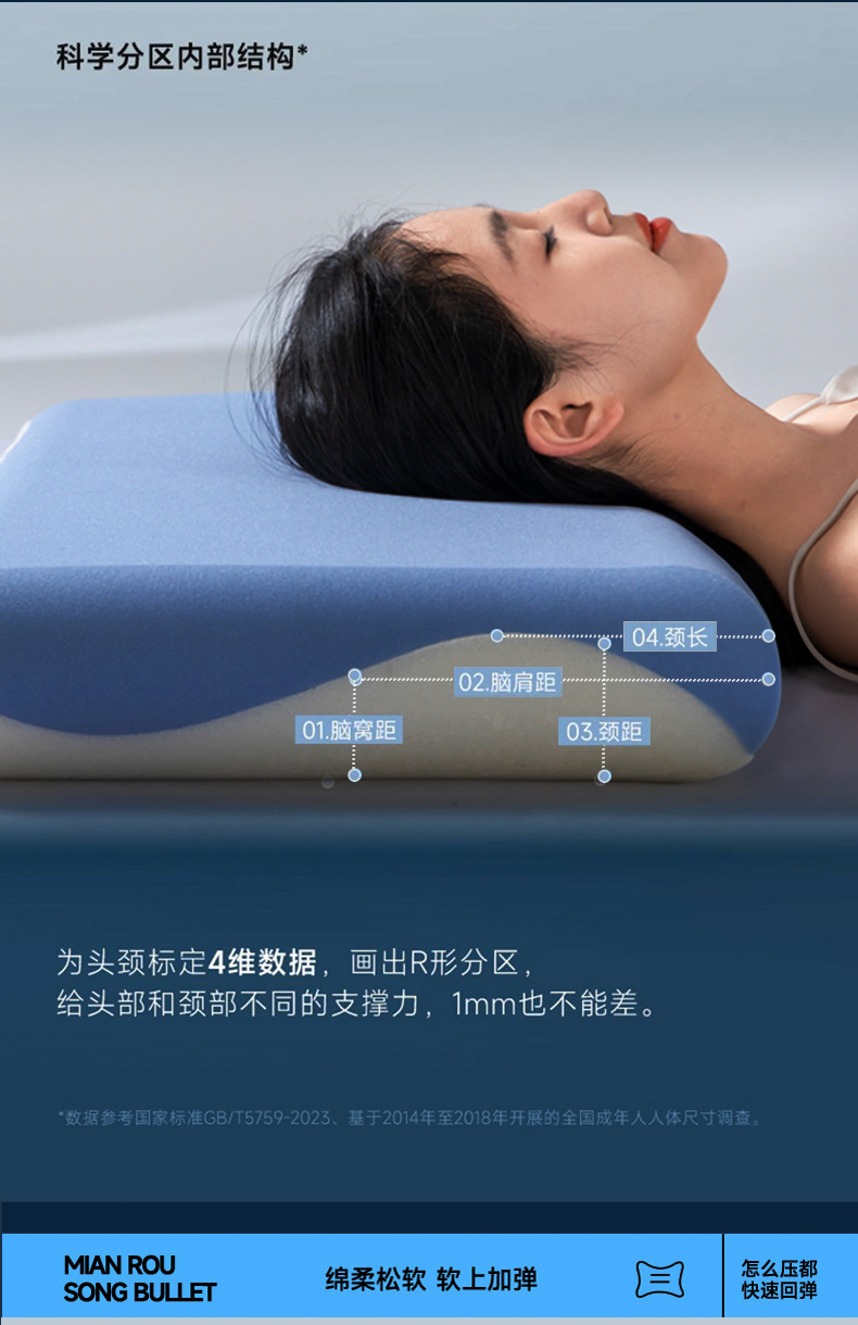商品名称:(总)七夜居 2026新款2代双芯蓝白双拼记忆棉零压护颈椎枕芯枕头【模具款】