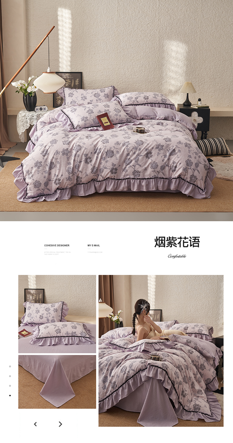 (总)晨曦家纺 2026春夏新款皱雾纱泡芙纱水洗少女ins风韩版四件套,奶油花篱,蓝花的信,松烟星子,素墨蝶语,雾里蔷薇,雾紫花信,云间花信