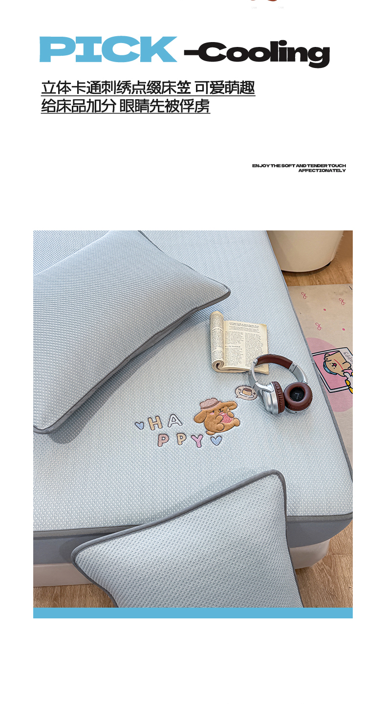 商品名称:(总)耐思家纺 2026新款A类复合三明治PE凉感卡通刺绣Happy熊-床笠款