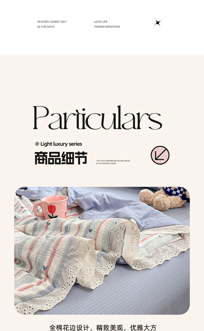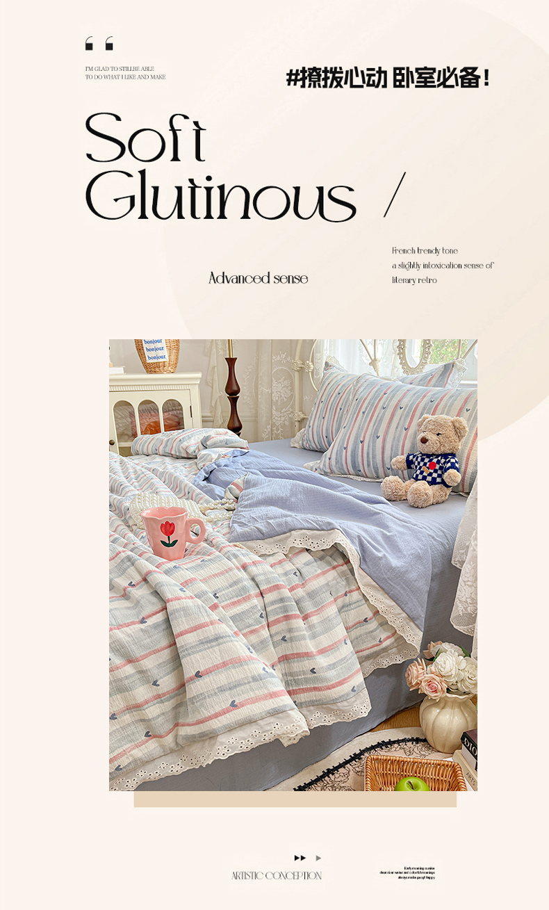 (总)优尚佳生活馆 2026新款云感皱皱纱全棉花边款夏被四件套,暗香,蝶儿飞,粉糯,扶摇,蓝屿,暮纱,清禾,清墨,晴野,疏影,甜喵,知夏