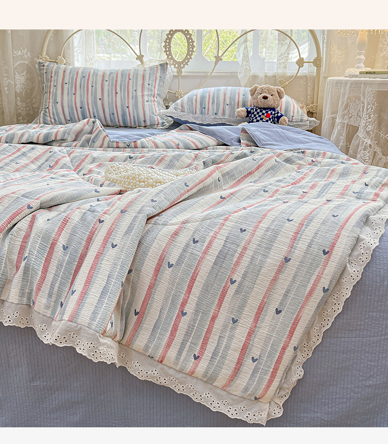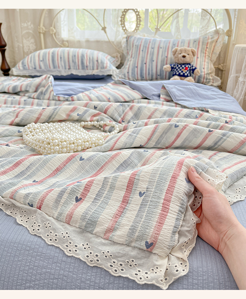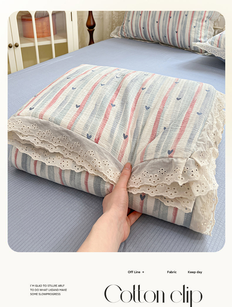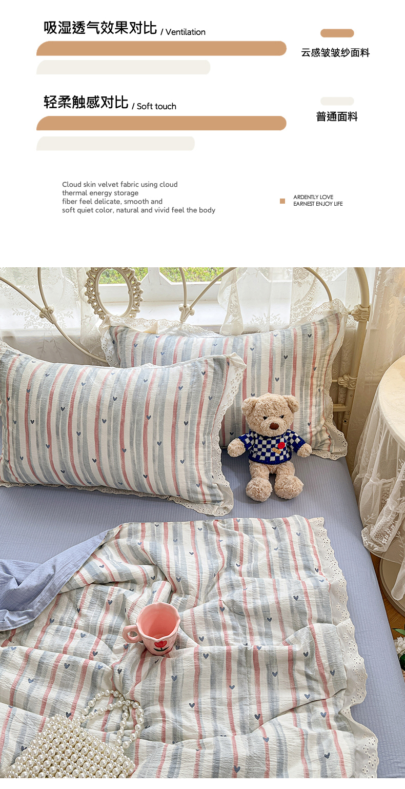 优尚佳生活馆 2026新款云感皱皱纱全棉花边款夏被四件套 蓝屿