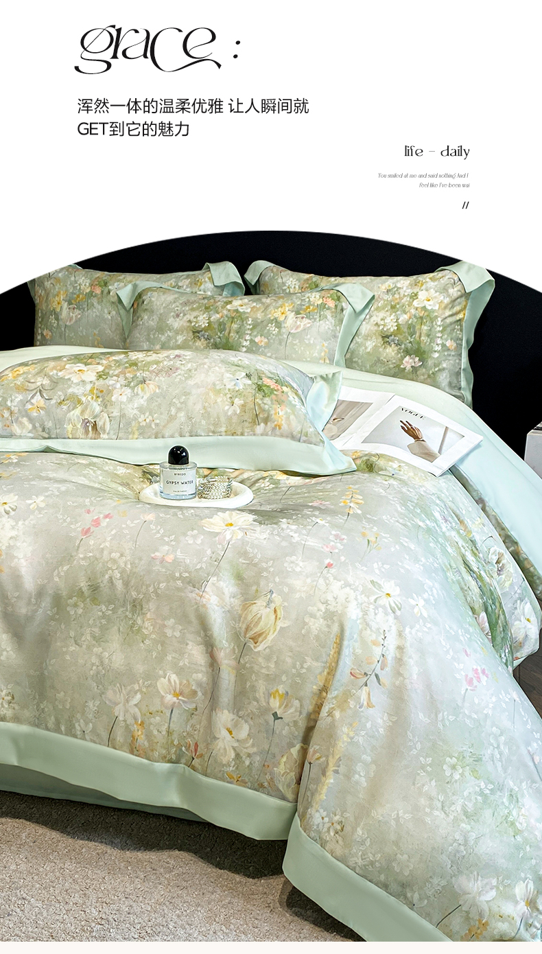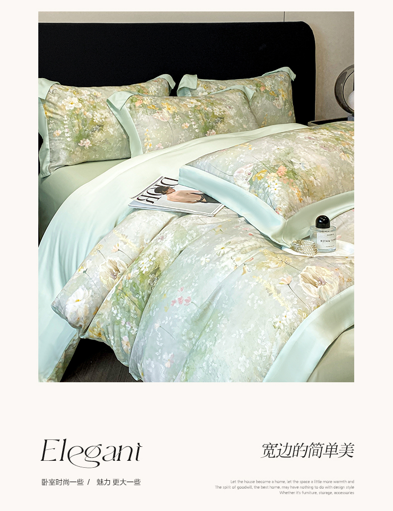 (总)博纳家纺 2026新款天丝莱塞尔轻奢高端数码印花拼角宽边夏被四件套冰感凉感四件套--夏洛伊系列,柏林春诗,春亭序,漫枝,绮梦,蔷薇庄园,夏洛伊