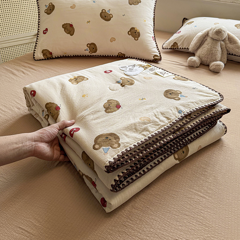 (总)晚爱 2026新款泡芙棉双层纱夏被四件套小清新泡泡纱夏被四件套,1软萌星,2星宝贝,3珍珠奶茶,4豹纹凯蒂,5喵星人,6格纹狗,7芋泥波波,8费尔岛小狗,9蓝雪花,10春风拂梦,11甜心小兔 主,12大熊猫