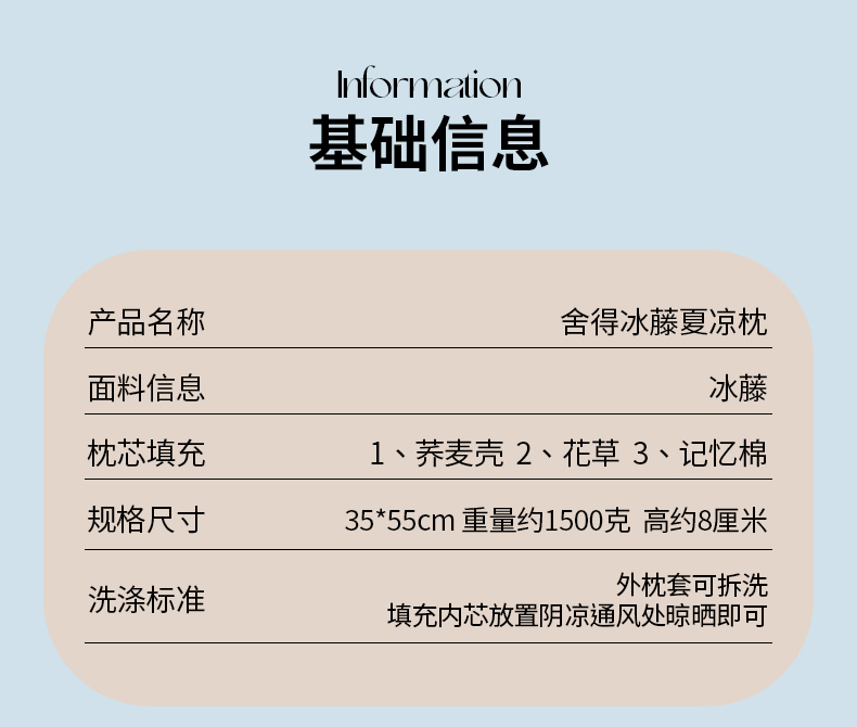 商品名称:(总)仁宇枕业 2026新款新品夏季清凉冰凉夏凉枕头舍得系列记忆棉花草荞麦枕头枕芯