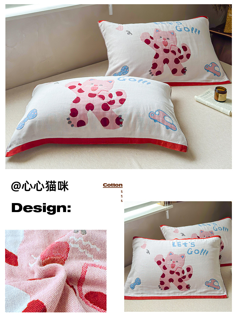 (总)乐家毛巾被(工厂自产自销) 2026新款全棉纯棉四层纱布枕巾,草莓面包,春日物语,纯色樱桃,耳机小熊,格纹草莓,黄色熊头,简约条纹,可颂面包,毛绒小兔,毛线小猫,蘑菇兔,南瓜派对,软糯云朵,三只小狗,森林小兔,生日小猫,甜心兔,顽皮熊猫,晚安小熊,五只小猫,心心猫咪,幸运猫