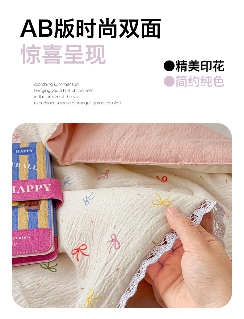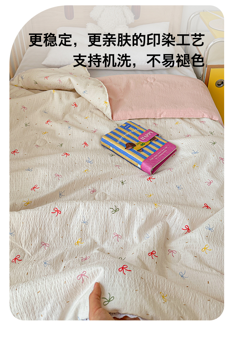 商品名称:名兮家居 2026新款儿童A类皱皱纱夏被夏凉被空调被 彩色蝴蝶结