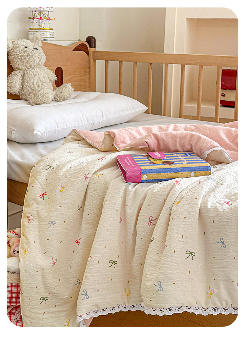 名兮家居 2026新款儿童A类皱皱纱夏被夏凉被空调被 彩色蝴蝶结