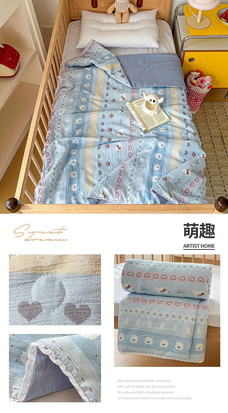 (总)名兮家居 2026新款儿童A类皱皱纱夏被夏凉被空调被,彩色蝴蝶结,粉色小兔,兰香入梦,美娜,萌趣,蜜芽兔,泡芙狗,泡泡兔,天使猫咪,心动波点,音乐家,组合图仅供展示不可下单