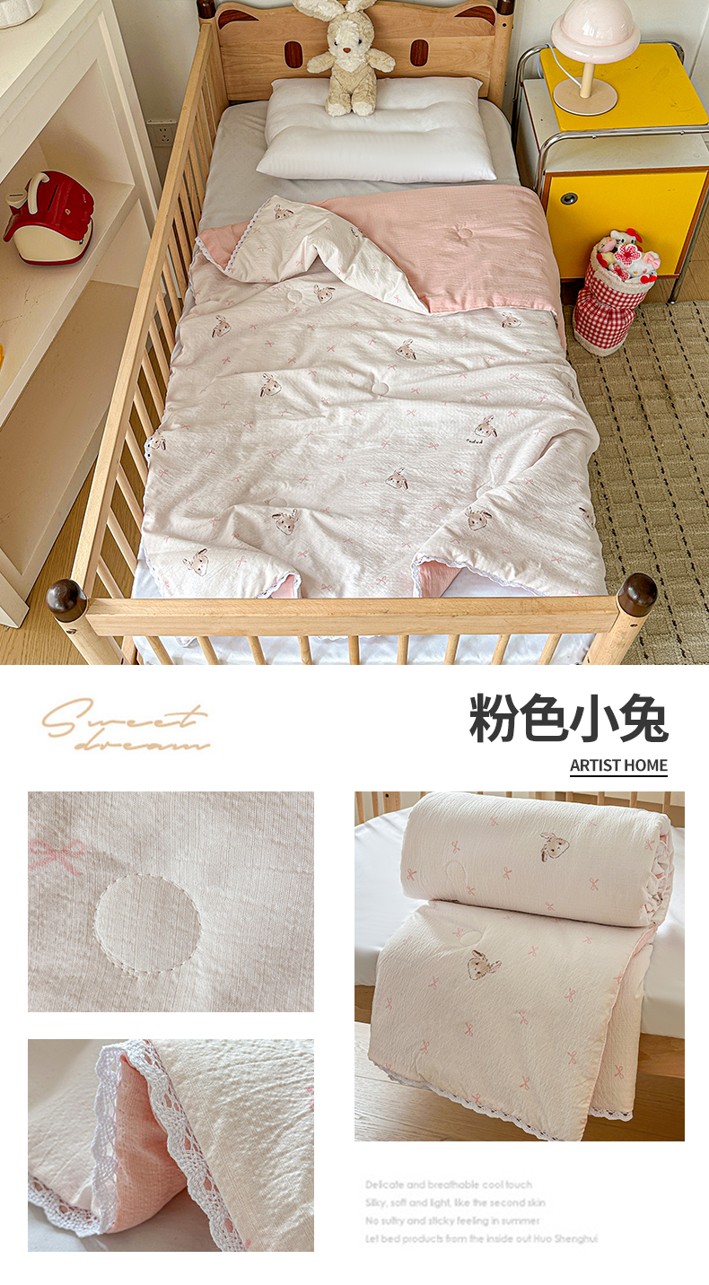 (总)名兮家居 2026新款儿童A类皱皱纱夏被夏凉被空调被,彩色蝴蝶结,粉色小兔,兰香入梦,美娜,萌趣,蜜芽兔,泡芙狗,泡泡兔,天使猫咪,心动波点,音乐家,组合图仅供展示不可下单