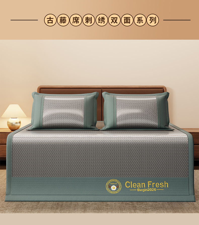 (总)怡源梦 2026新款古藤席刺绣双面系列,古藤席-棕色,古藤席-灰色,古藤席-绿色,古藤席-深咖