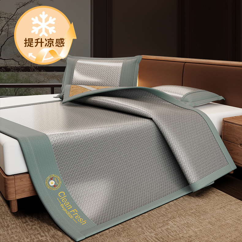 (总)怡源梦 2026新款PE高分子加厚三明治冰豆豆水波纹全包包边凉席席子,水波纹-灰色,水波纹-粉色,水波纹-兰色,水波纹-绿色