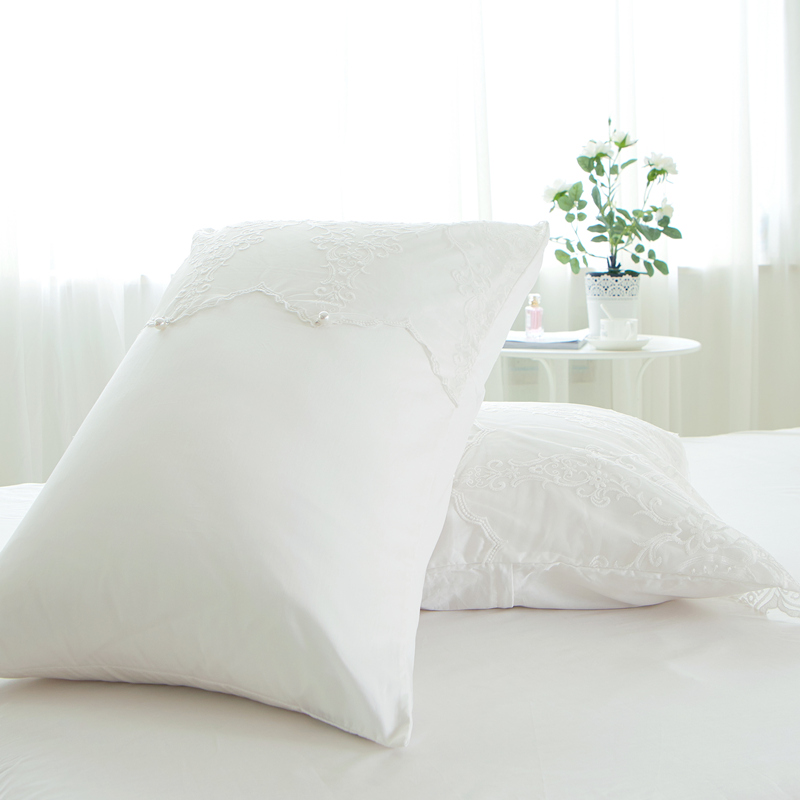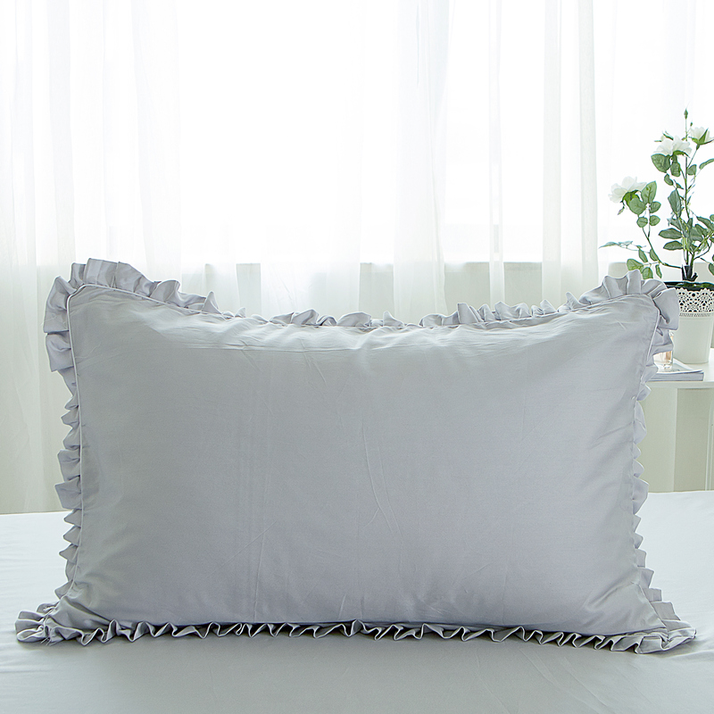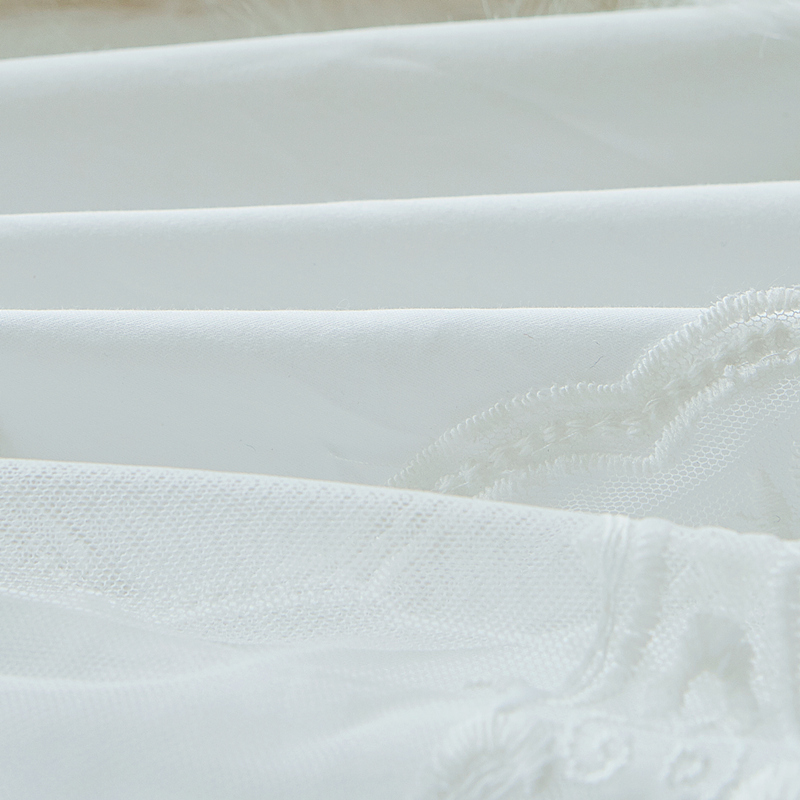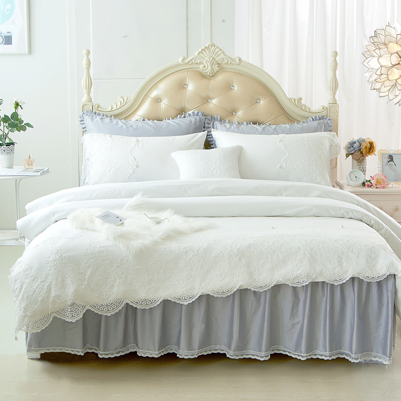 商品名称:菊上家纺 60S贡缎全棉纯色蕾丝床裙四件套 灰白情调