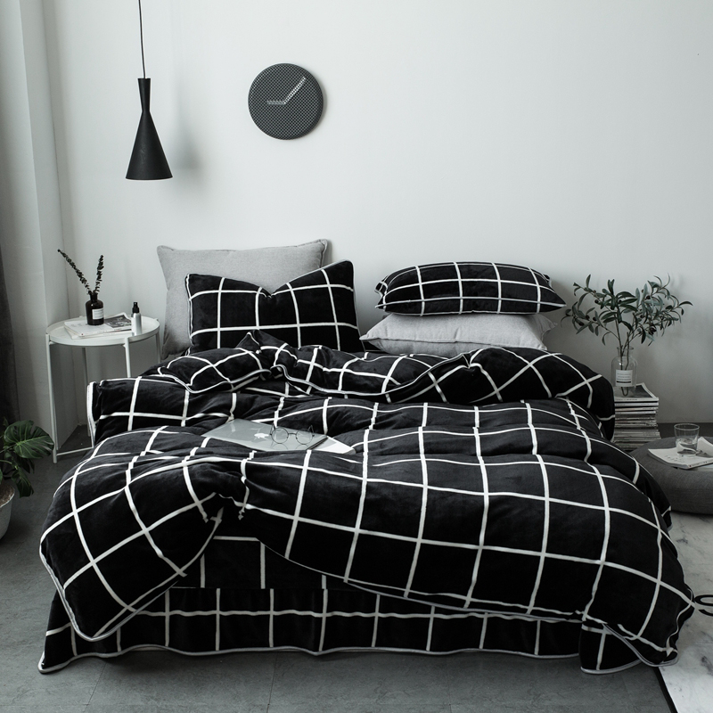 顾里家纺 加厚保暖牛奶绒套件 经典时尚格