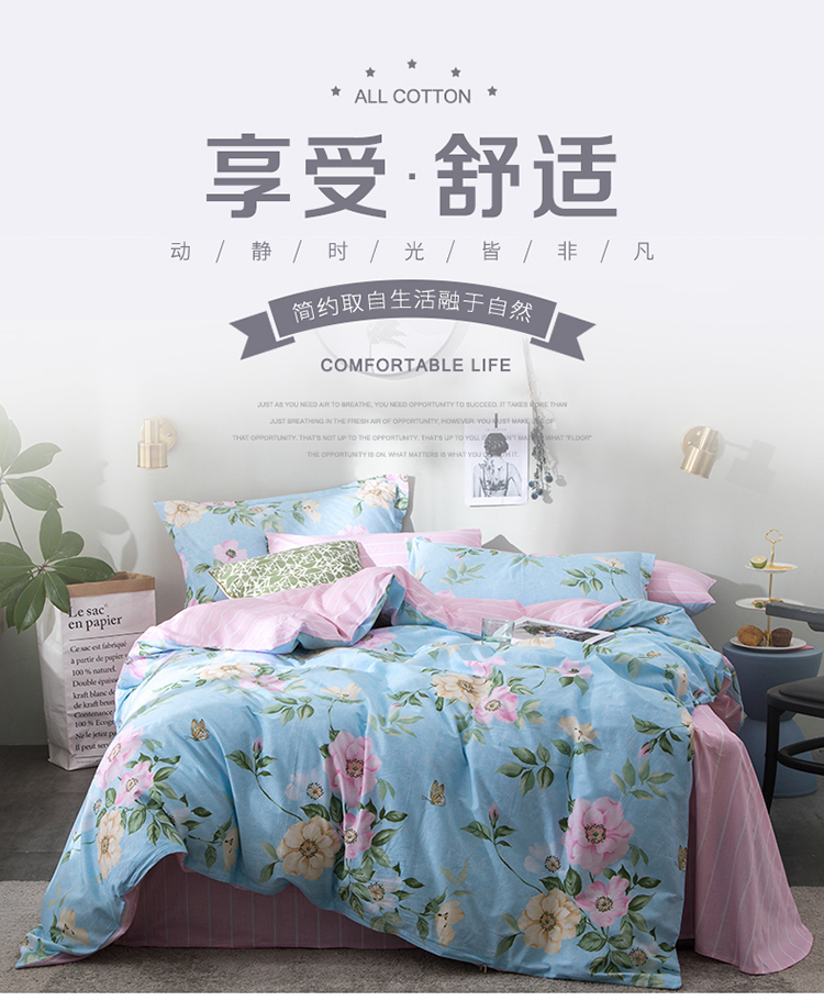 芃成家纺 2020全棉133X72圆网四件套 闺蜜-蓝