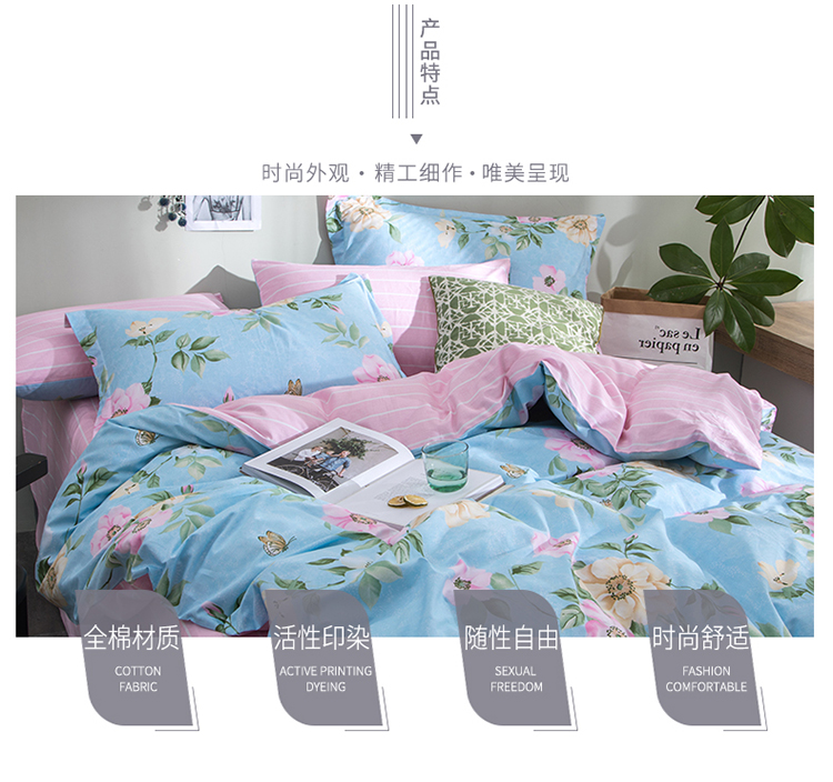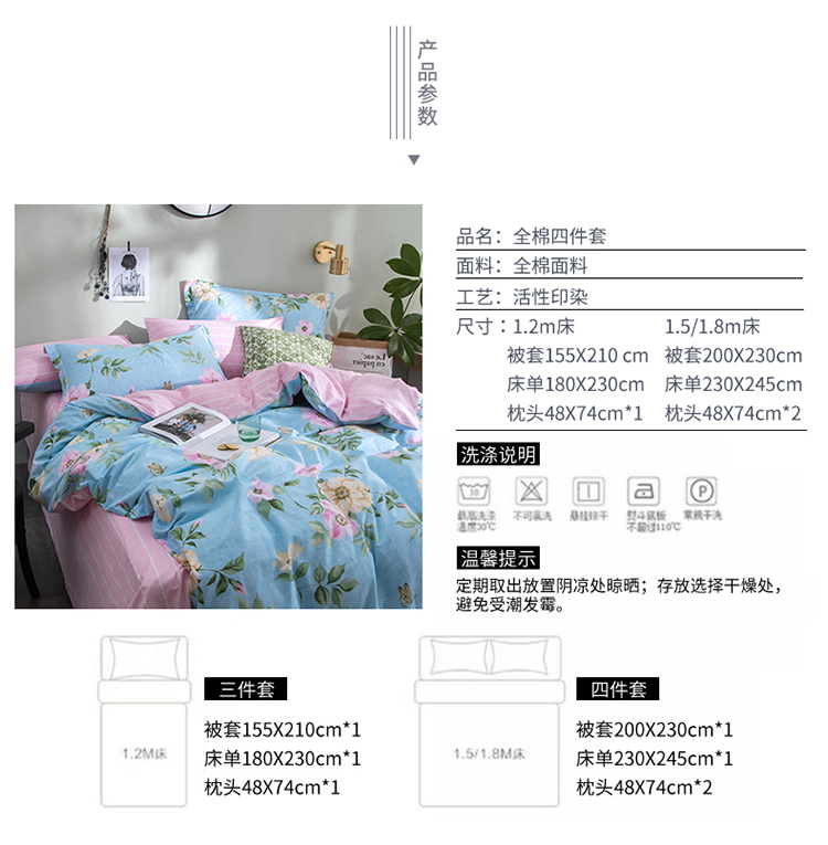 商品名称: 芃成家纺 2020全棉133X72圆网四件套 闺蜜-蓝