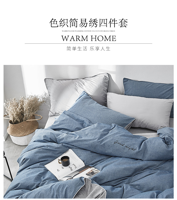 2018秋冬新款色织简易绣四件套 秀-牛仔