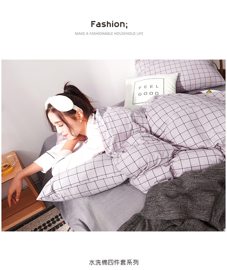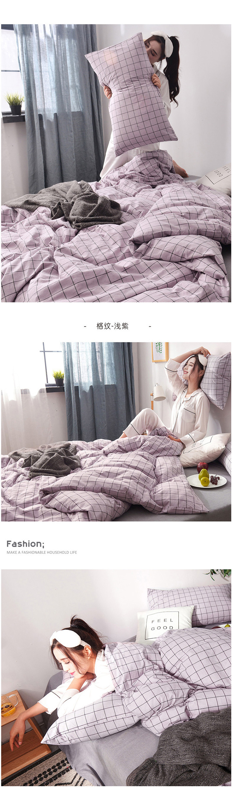 商品名称:柠萌家居2019全棉色织水洗棉无印良品四件套床单款格纹-浅紫
