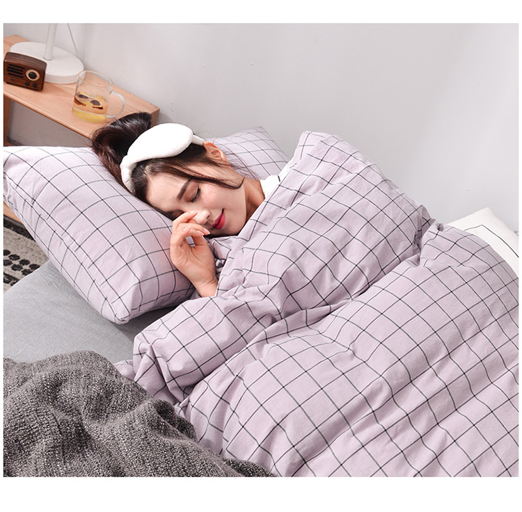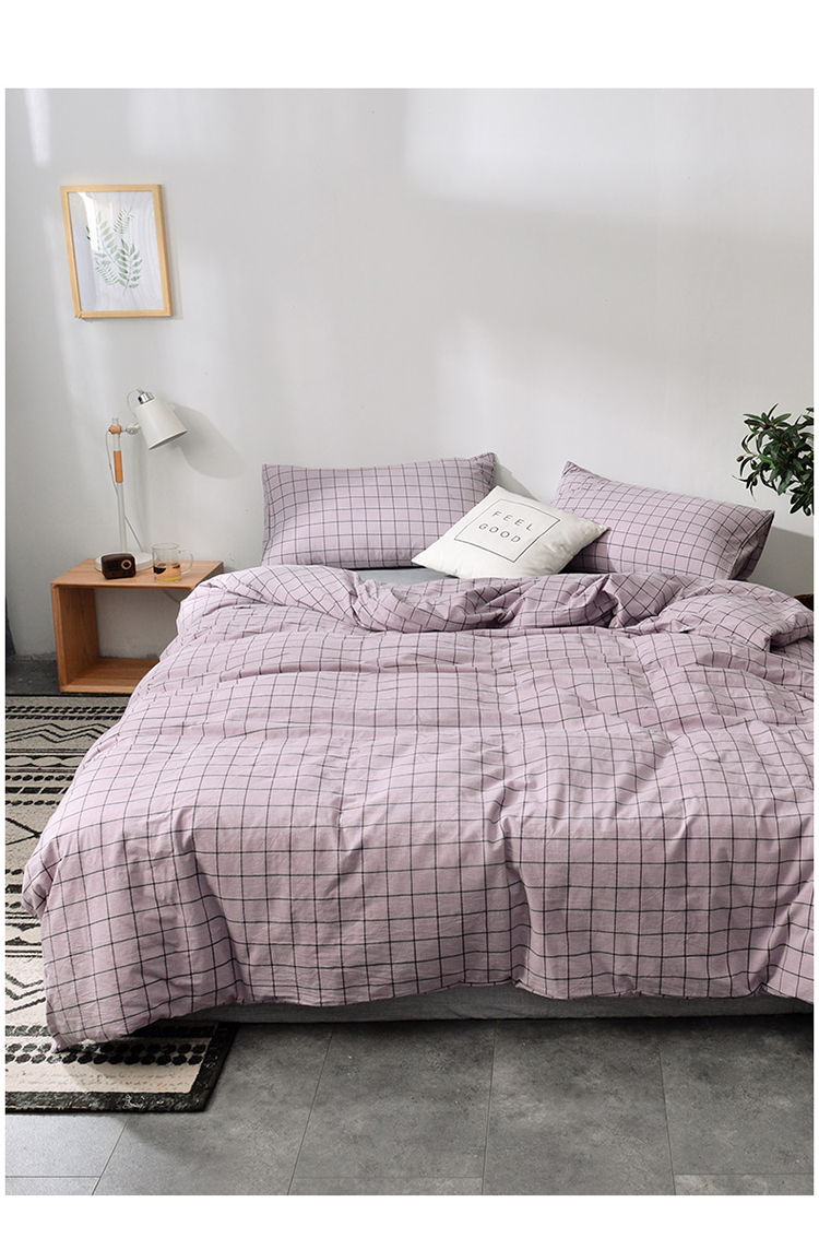 柠萌家居2019全棉色织水洗棉无印良品四件套床单款格纹-浅紫