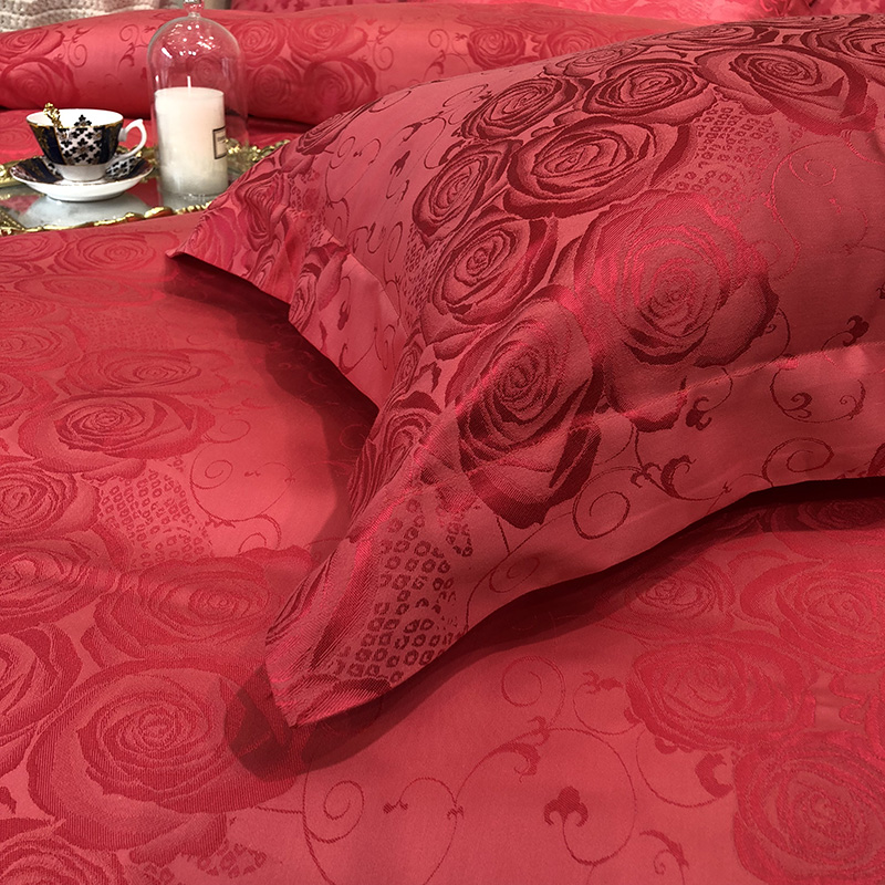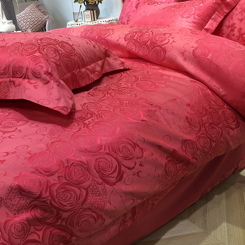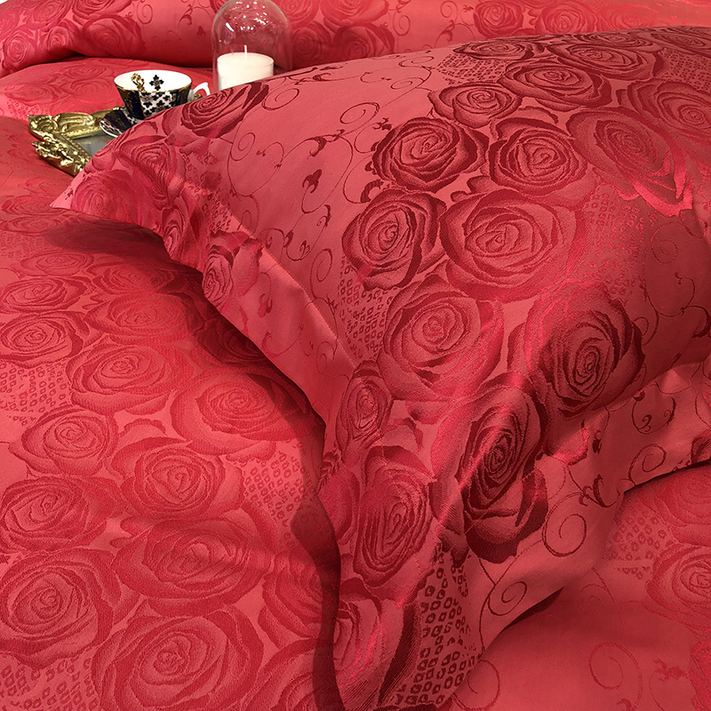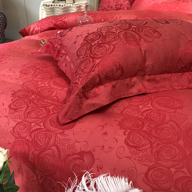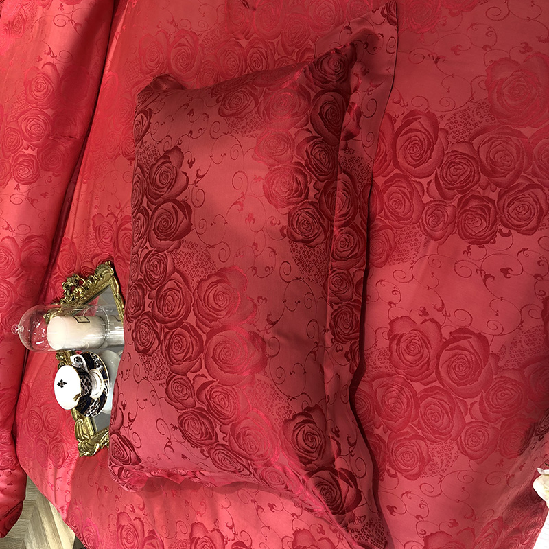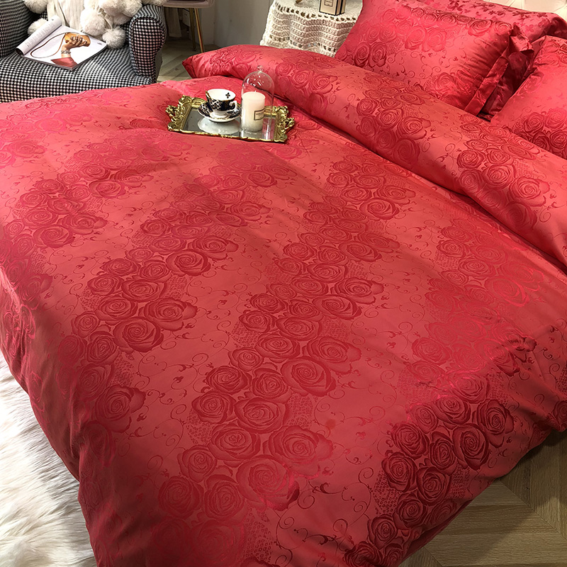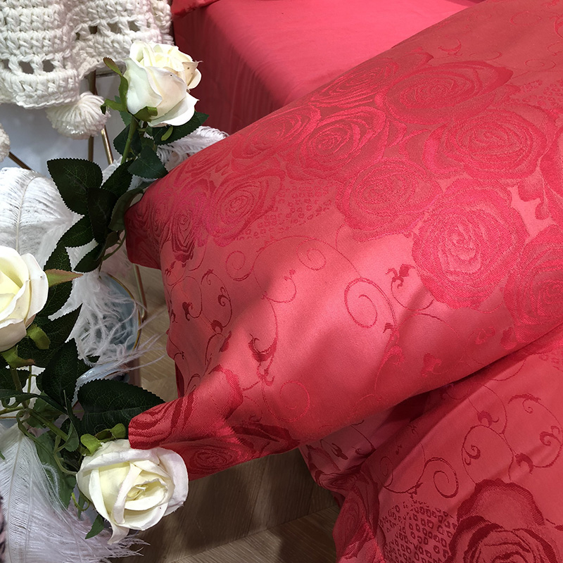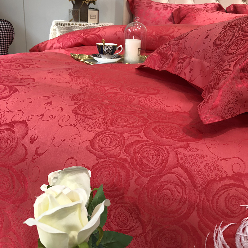 商品名称:馨蕊家居 60仿丝绵提花四件套 魅力佳人-砖红