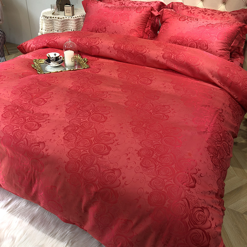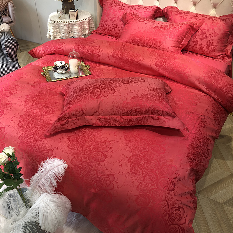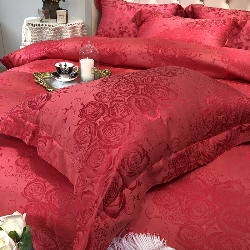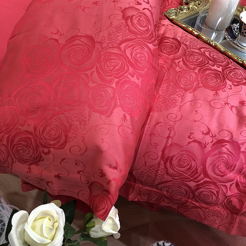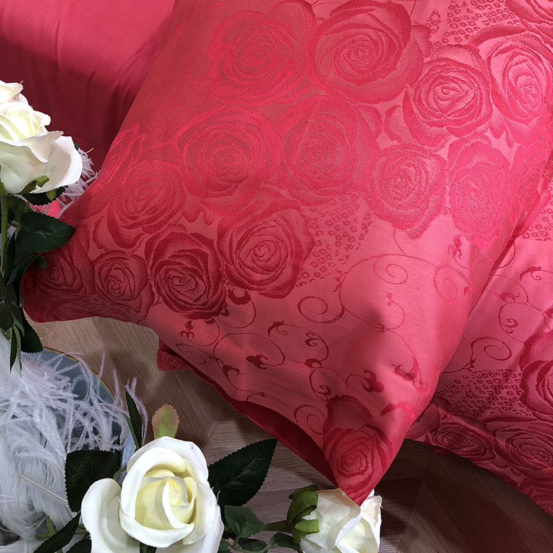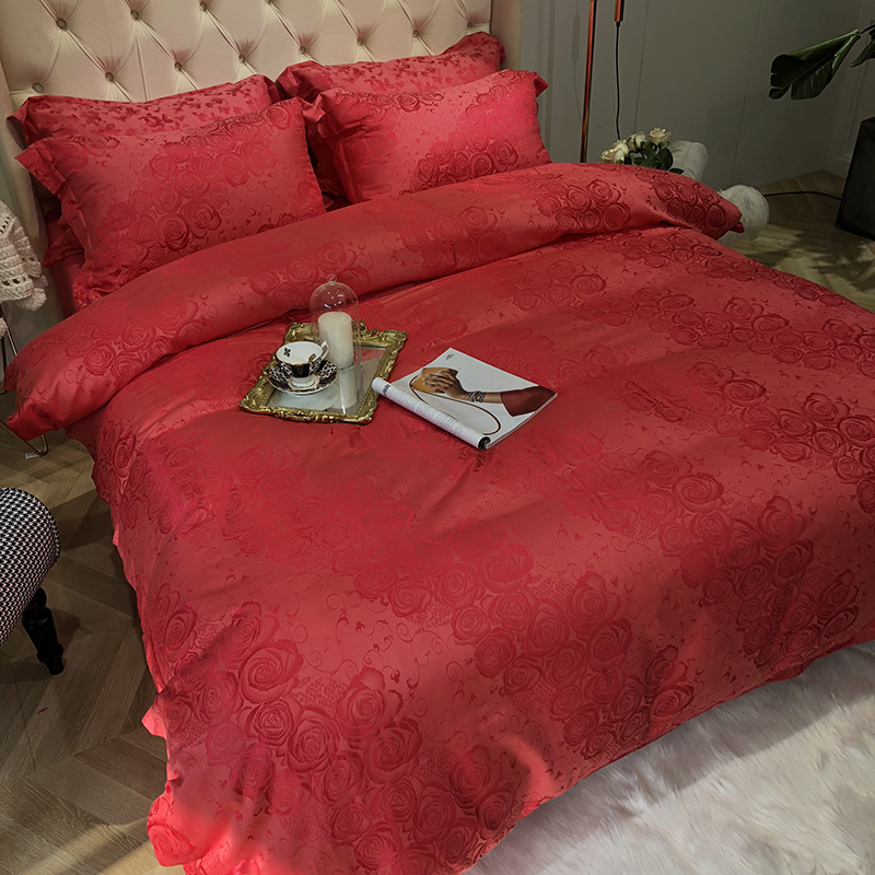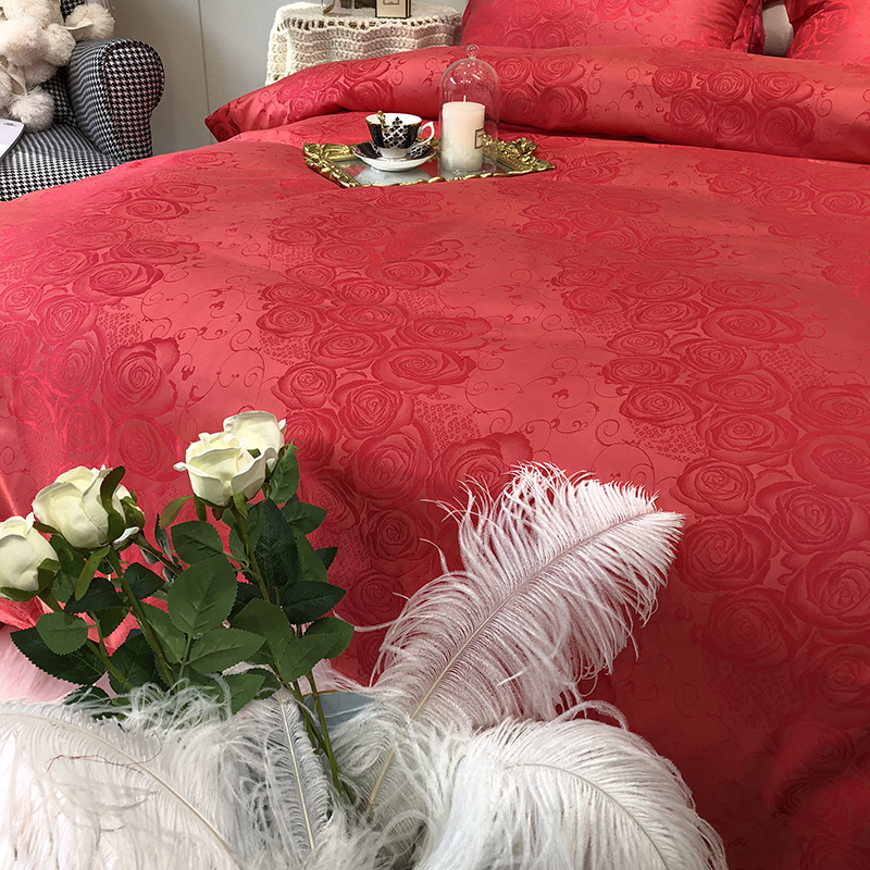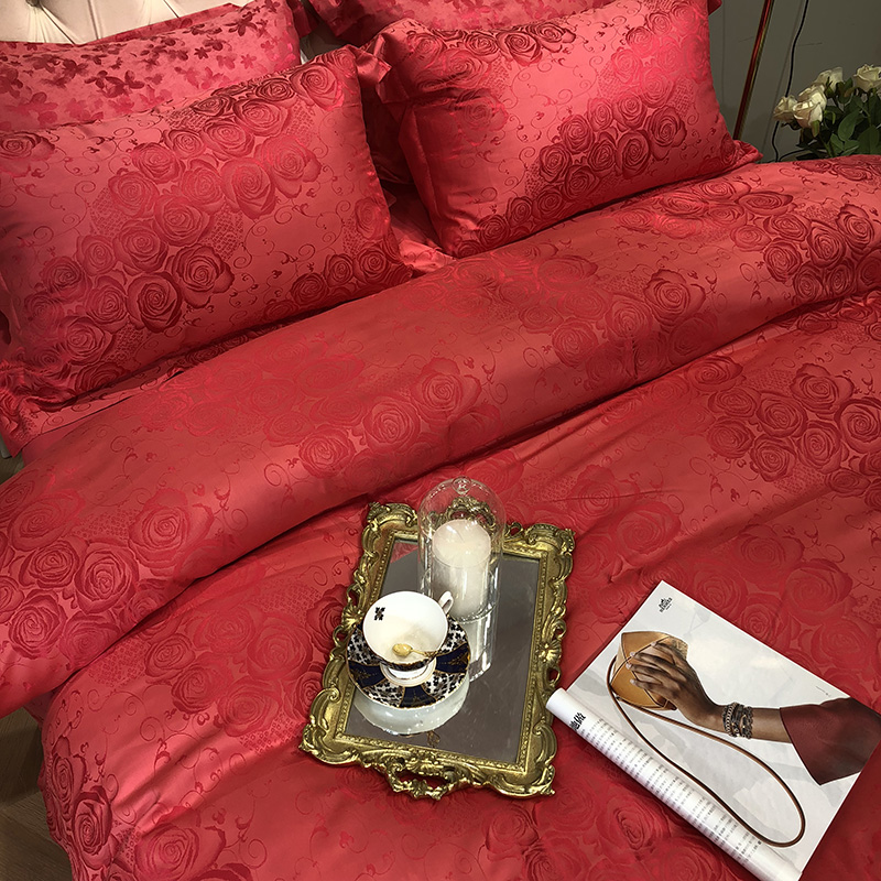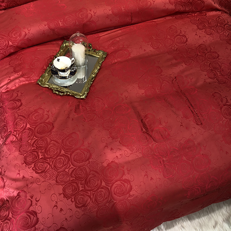 商品名称:馨蕊家居 60仿丝绵提花四件套 魅力佳人-砖红