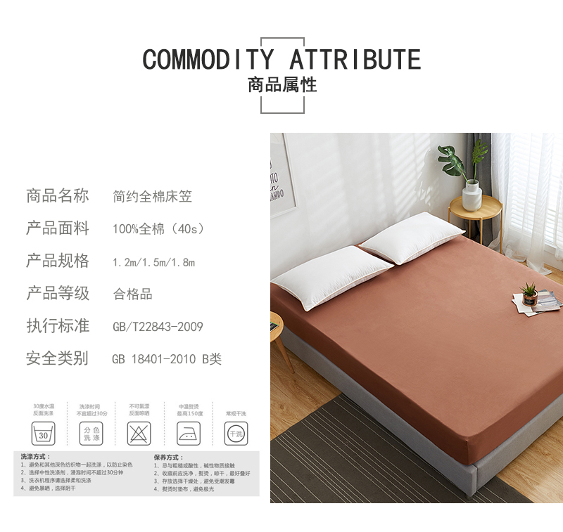 商品名称:欣喜来 40s简约全棉纯色单品床笠(预留缩水) 咖色
