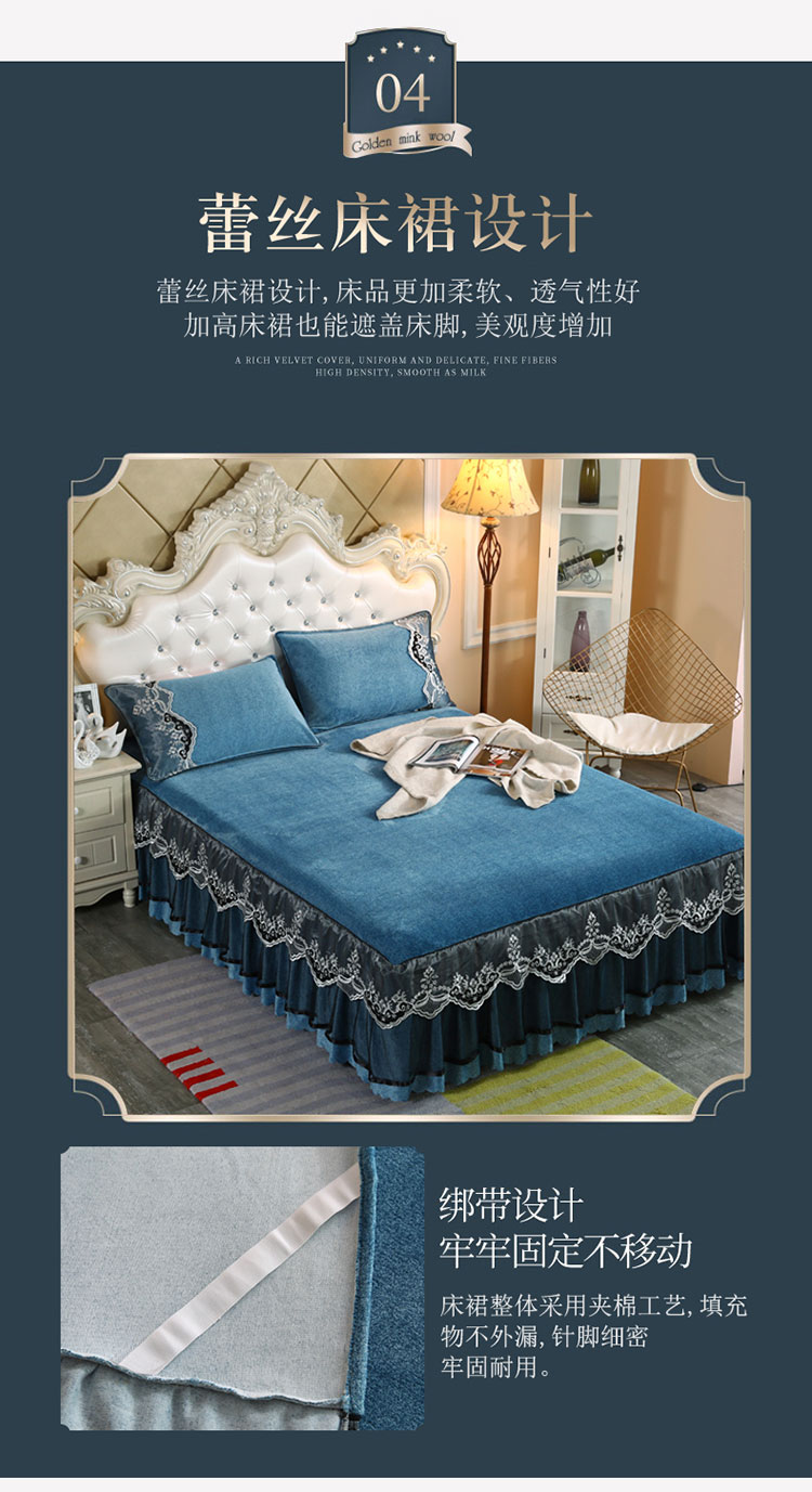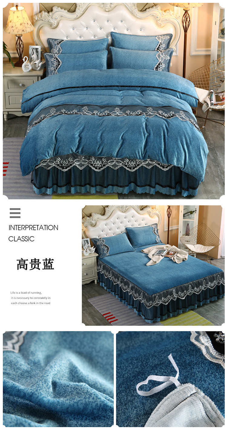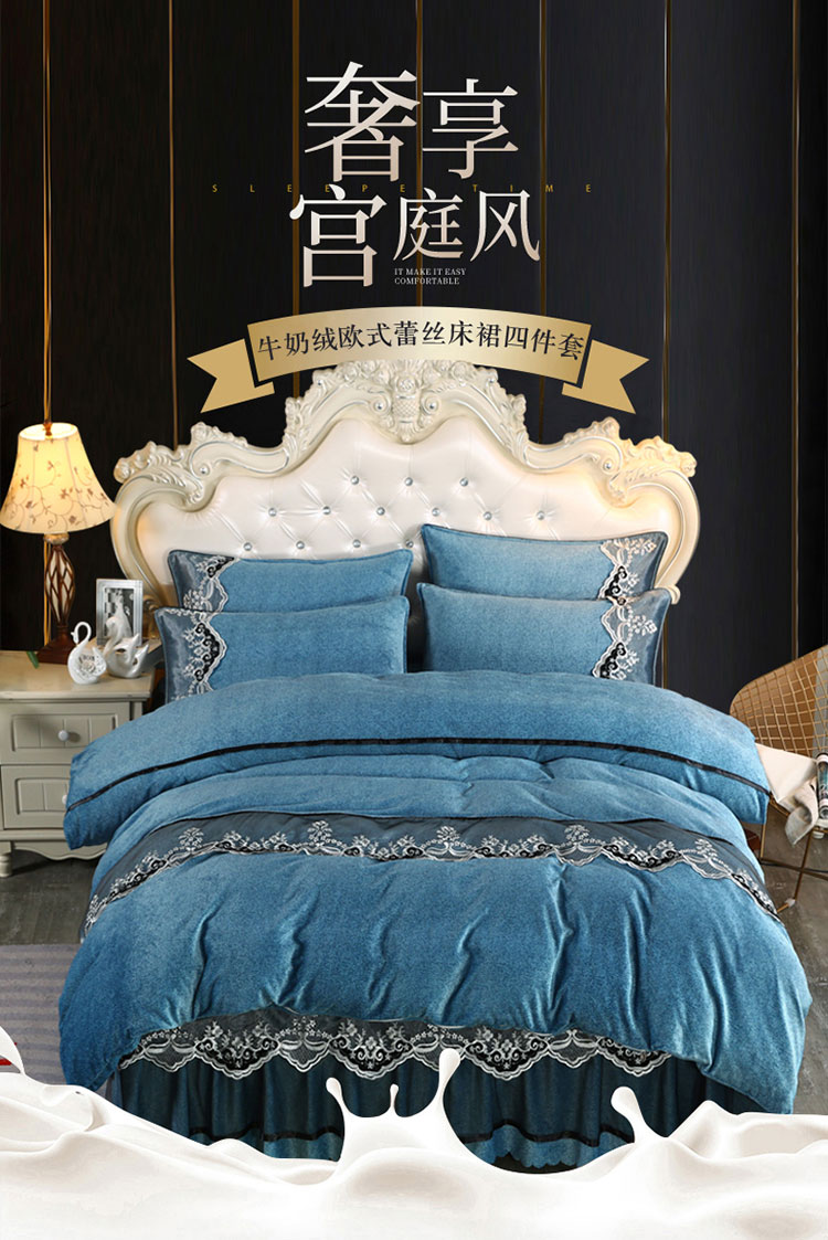 情恒家纺 2020新款牛奶绒床裙款四件套 高贵蓝