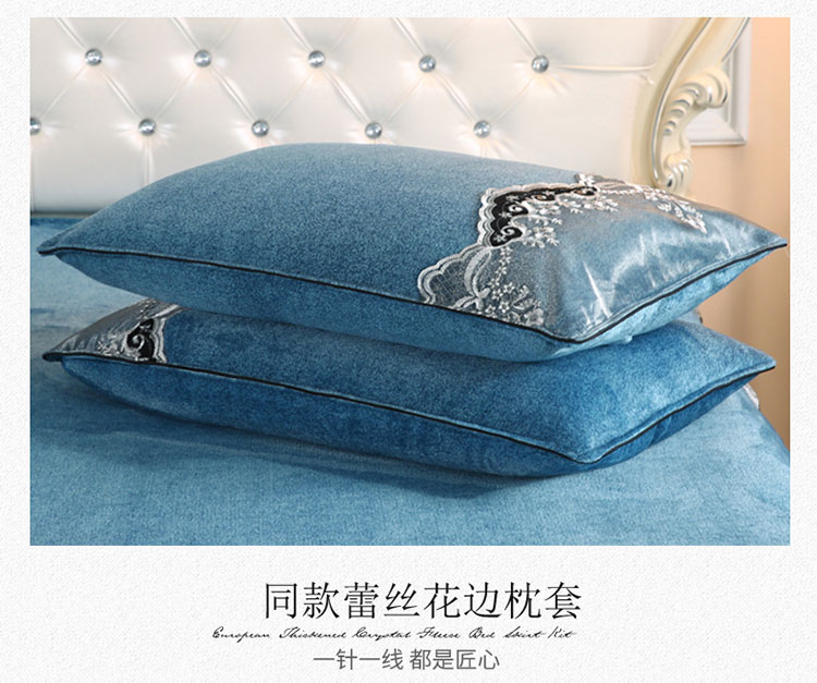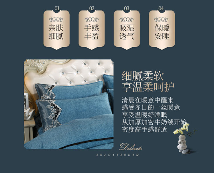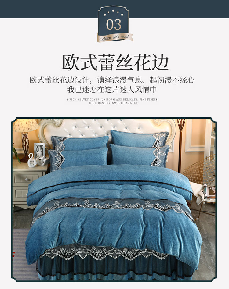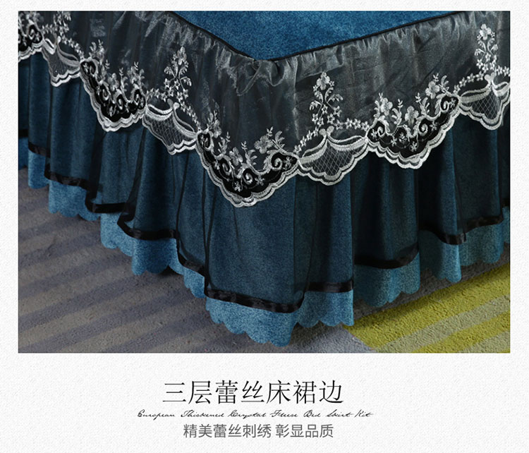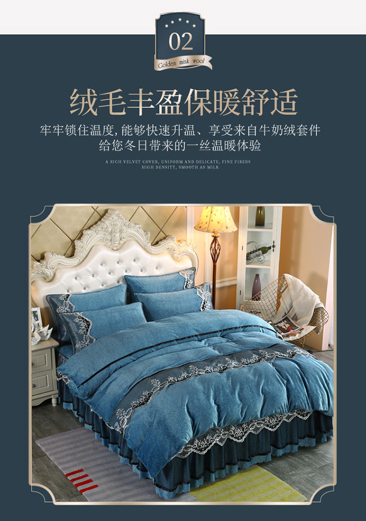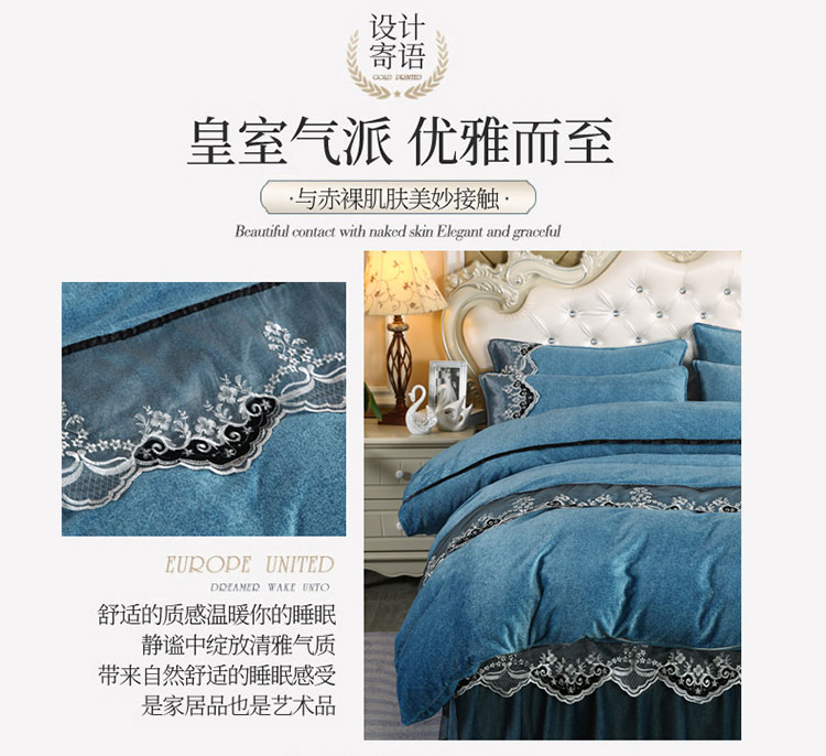 情恒家纺 2020新款牛奶绒床裙款四件套 高贵蓝