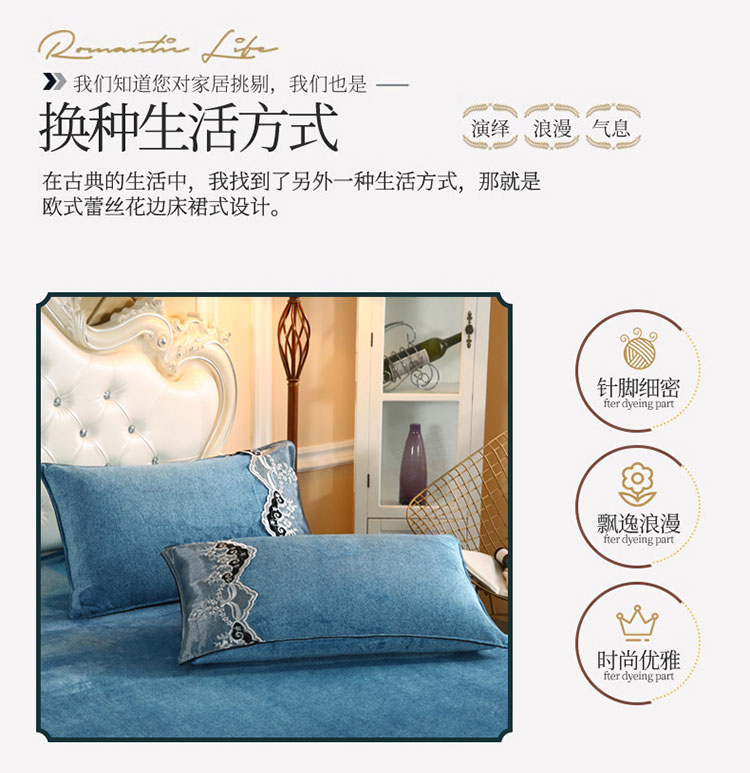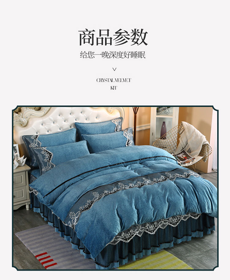 商品名称:情恒家纺 2020新款牛奶绒床裙款四件套 高贵蓝
