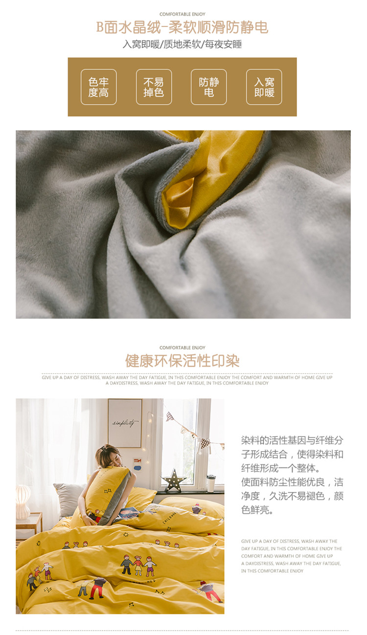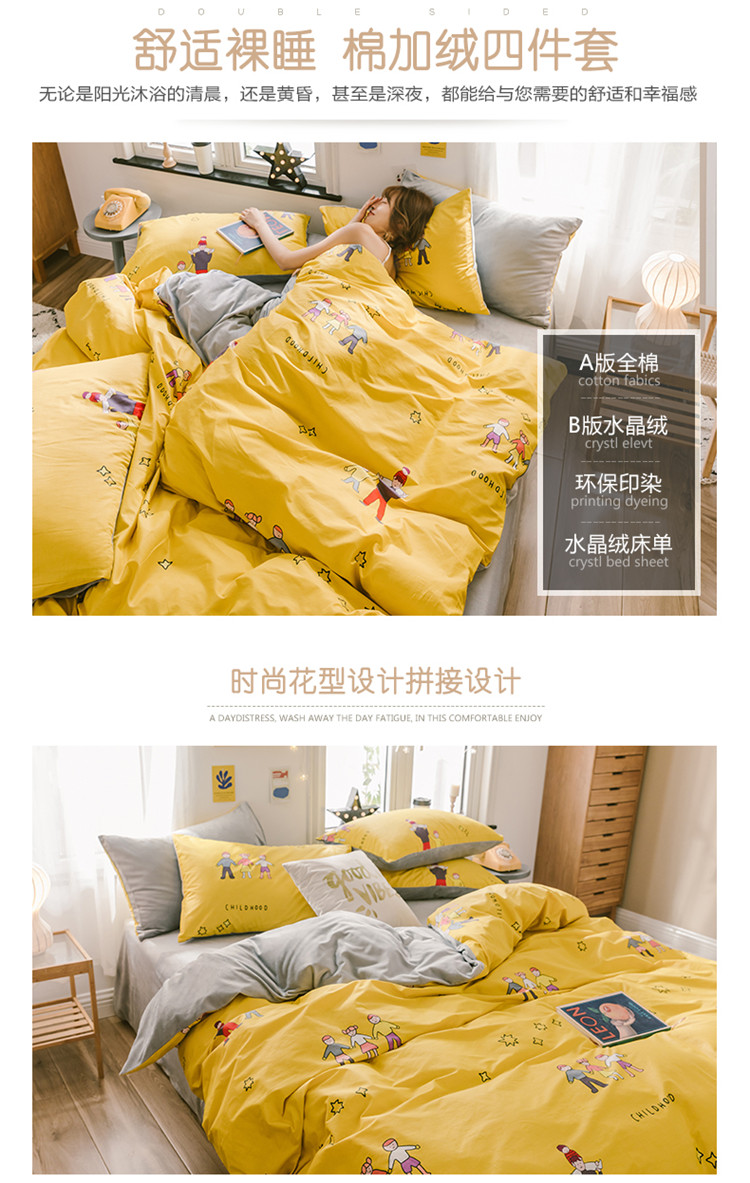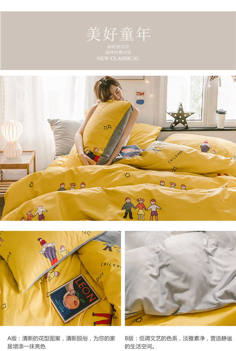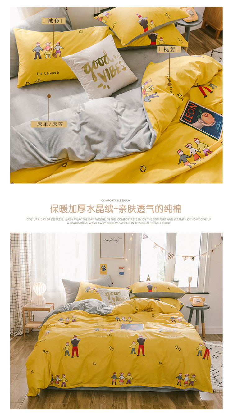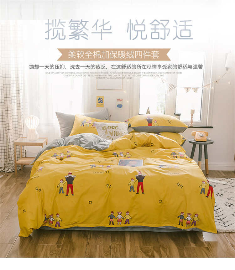 窝米 2019新款圆网棉加绒四件套床单款 美好童年