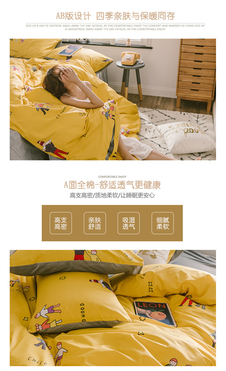 窝米 2020春夏新品全棉13372四件套小波西风系列小尤里,小尤里