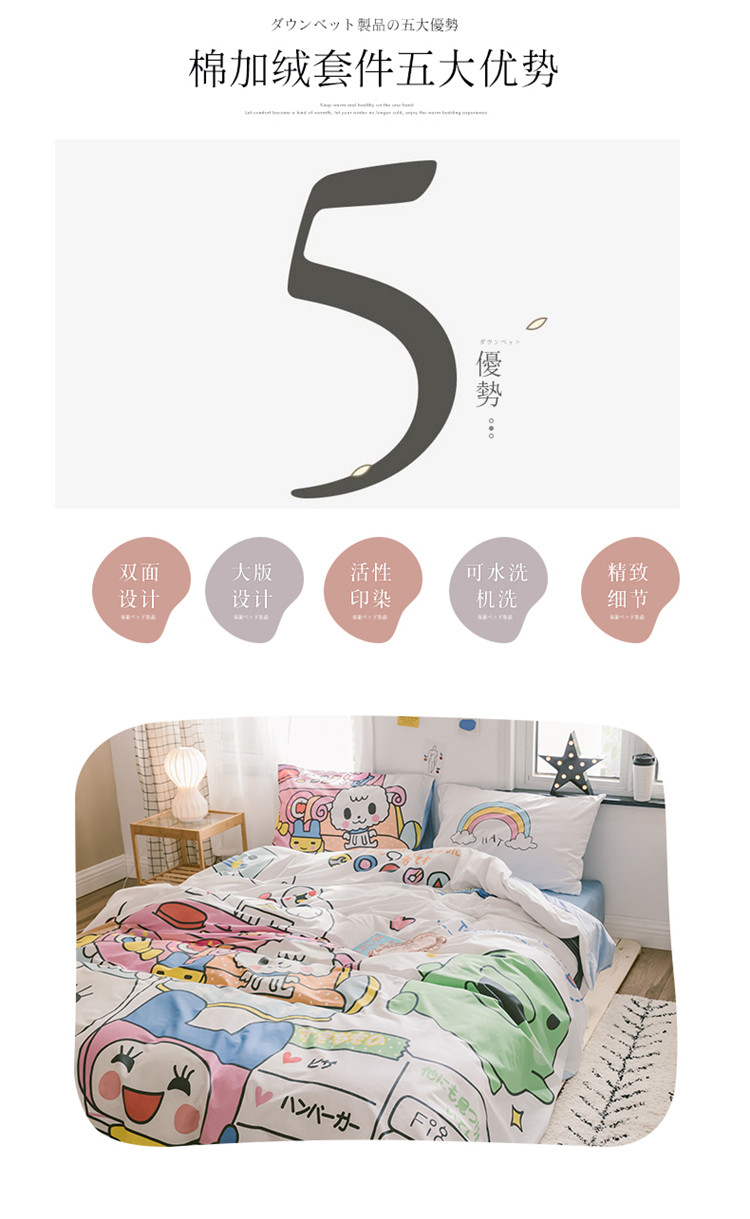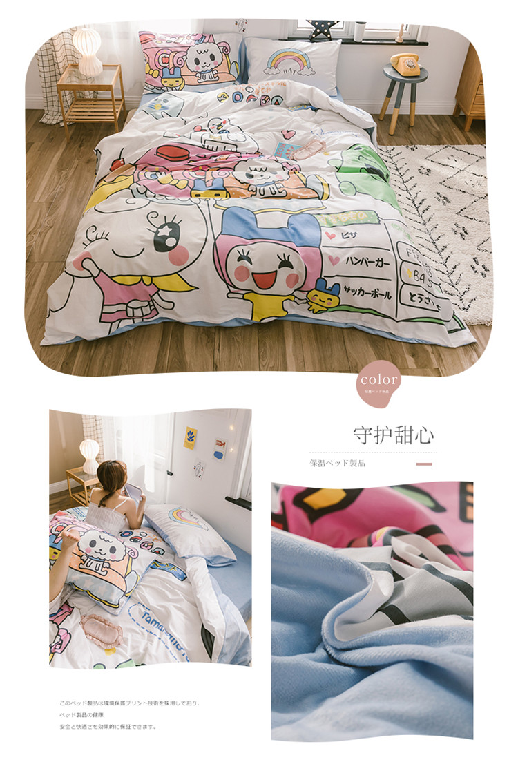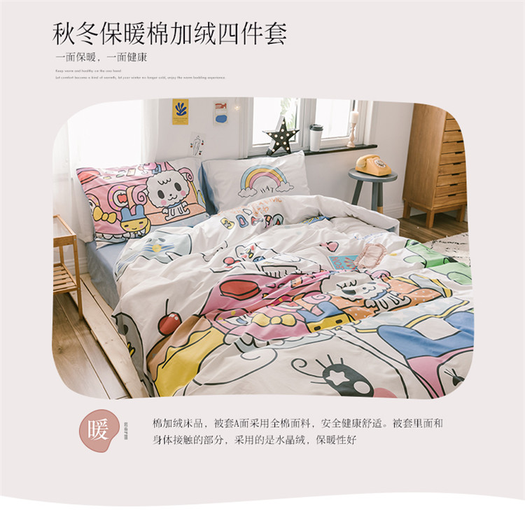 商品名称:窝米 2019大版二次元卡通棉加绒四件套床单款 守护甜心