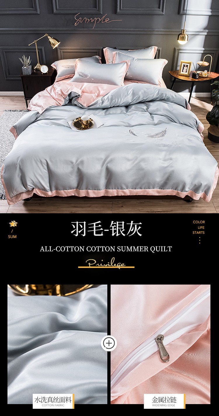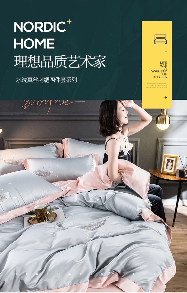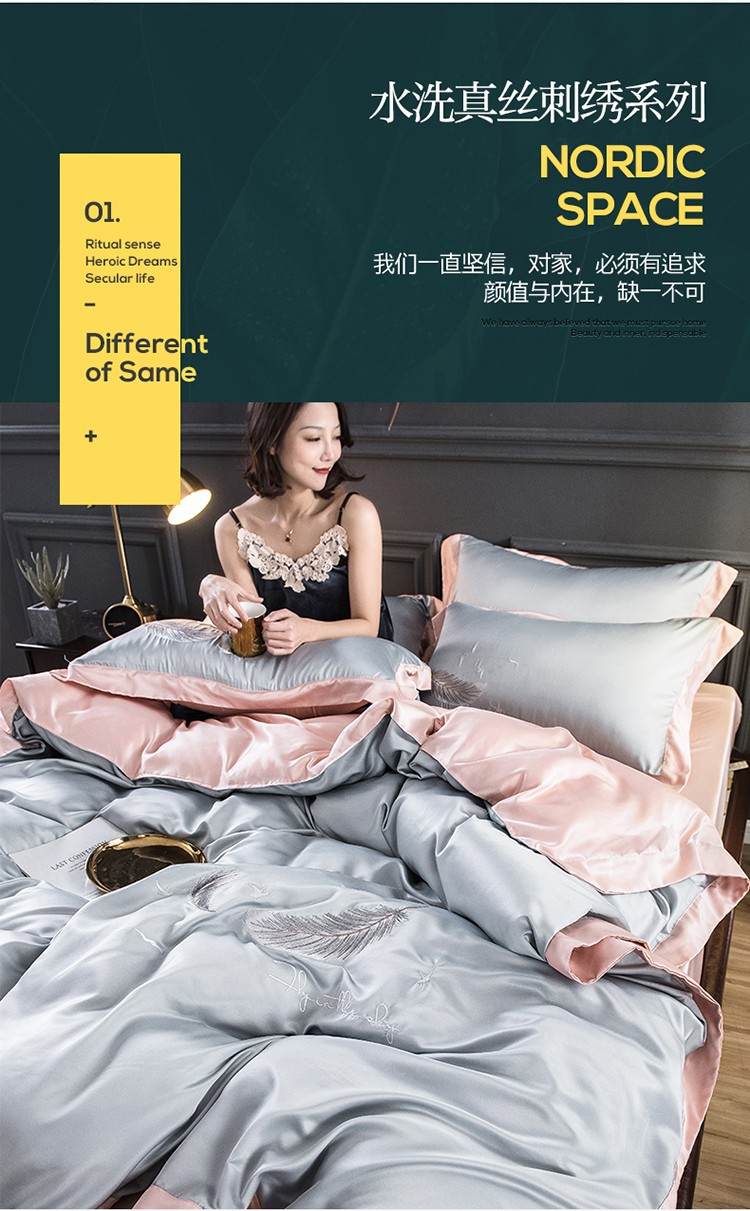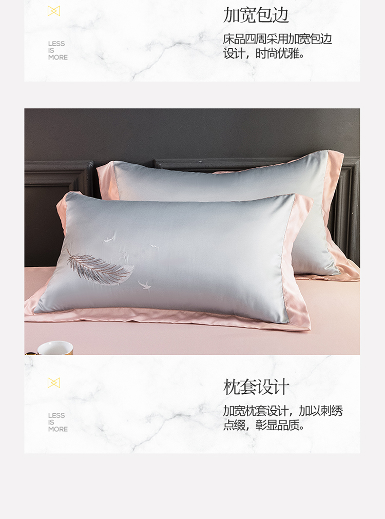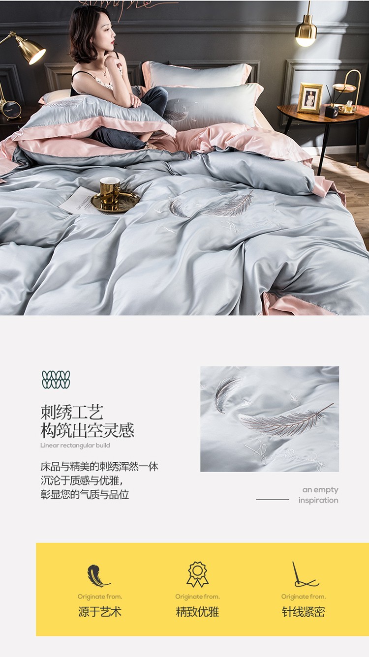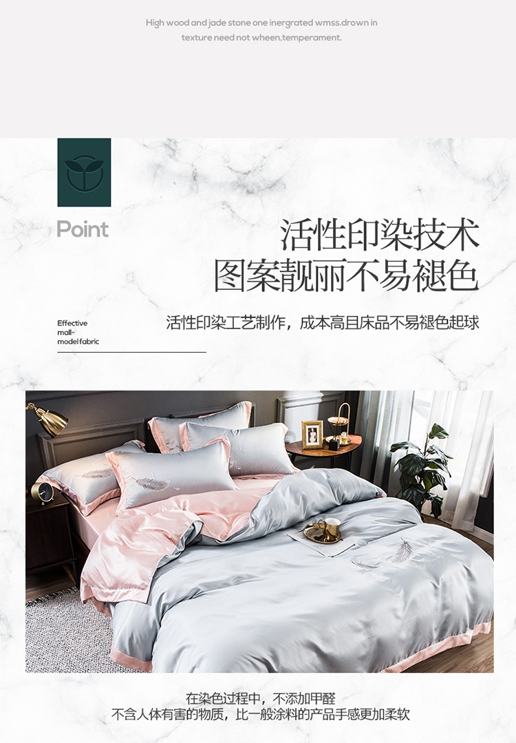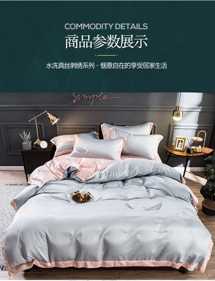商品名称:骏腾 2022新款纯色水洗真丝刺绣四件套 羽毛-银灰