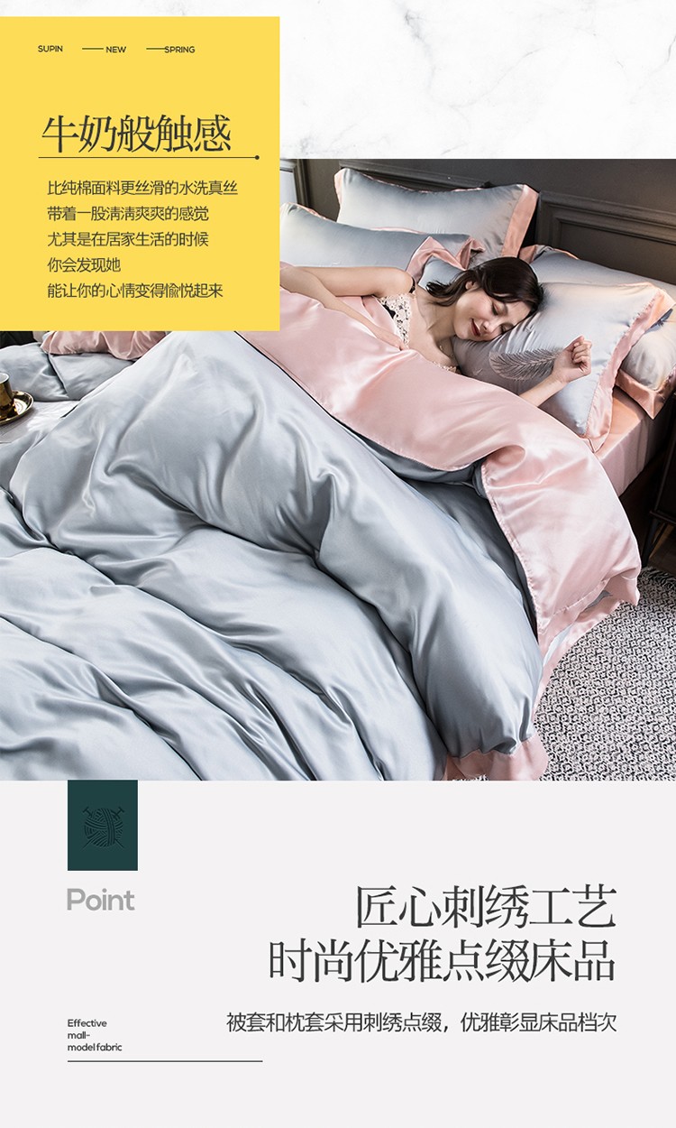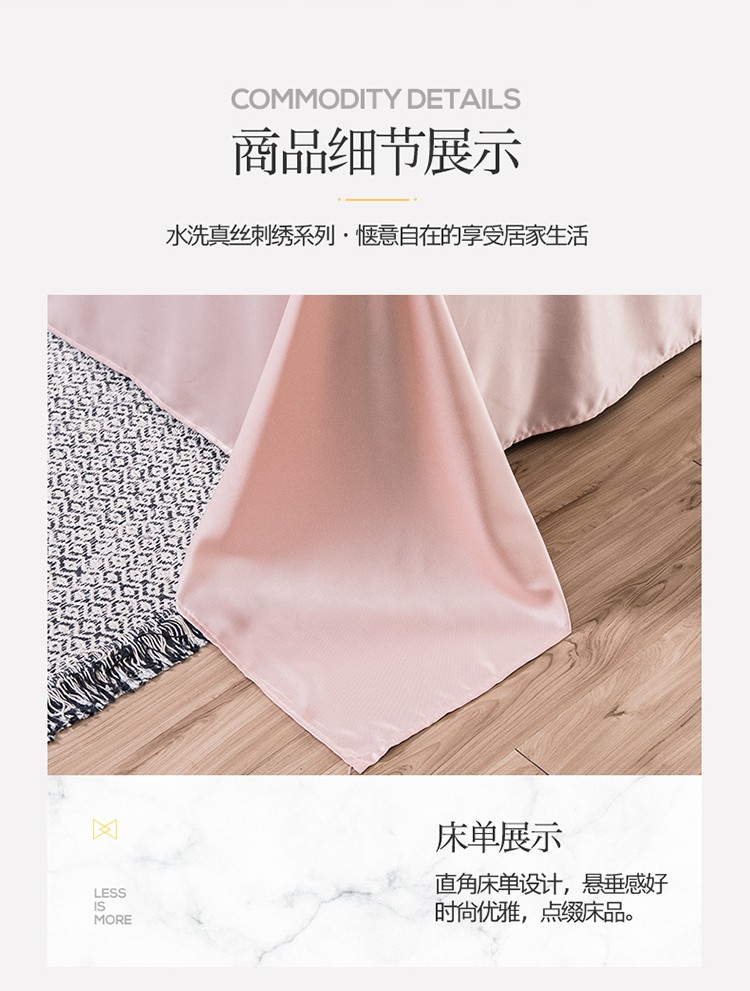 (总)骏腾 2022简爱水洗天丝绣花四件套水洗真丝三件套,宝蓝,湖蓝,酒红,墨绿,深灰,银灰,玉色