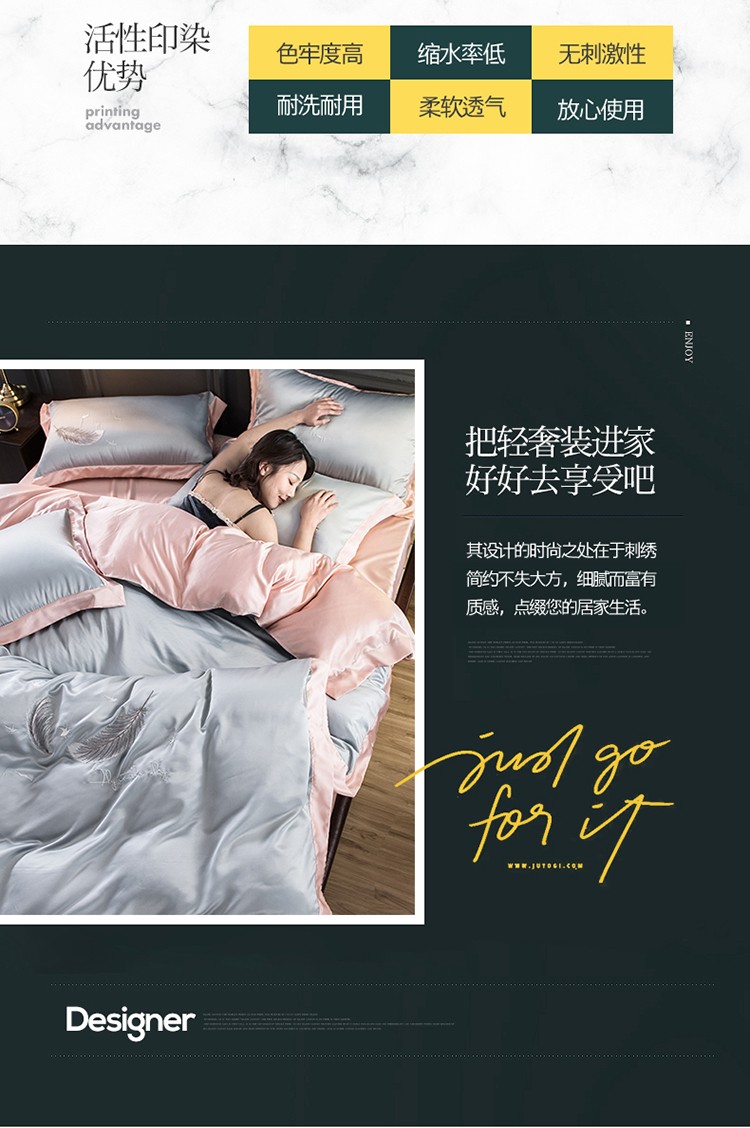 (总)骏腾 2022新款纯色水洗真丝刺绣四件套,羽毛-湖蓝,羽毛-米白,羽毛-墨绿,羽毛-深蓝,羽毛-天蓝,羽毛-银灰