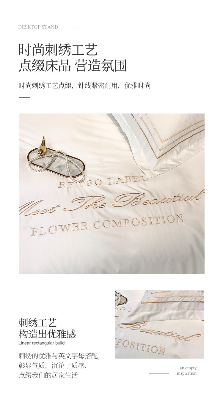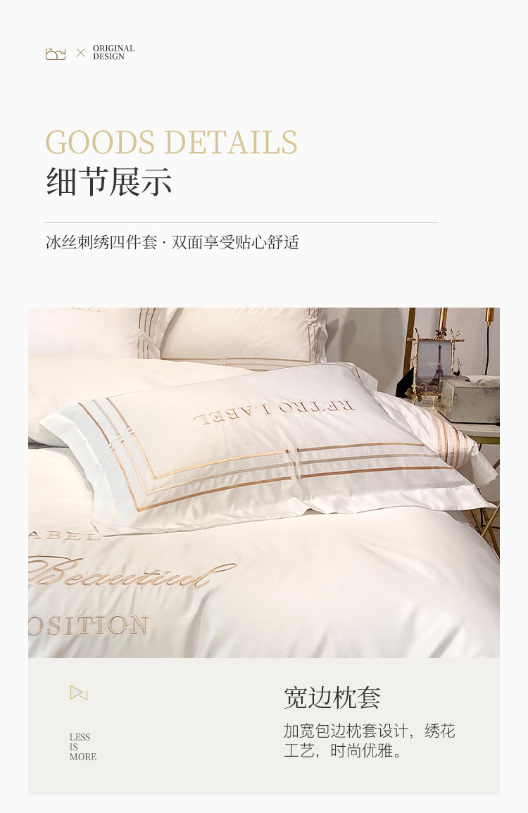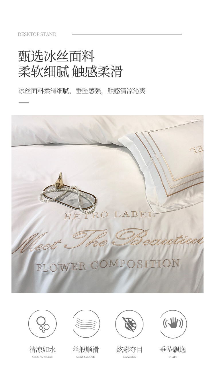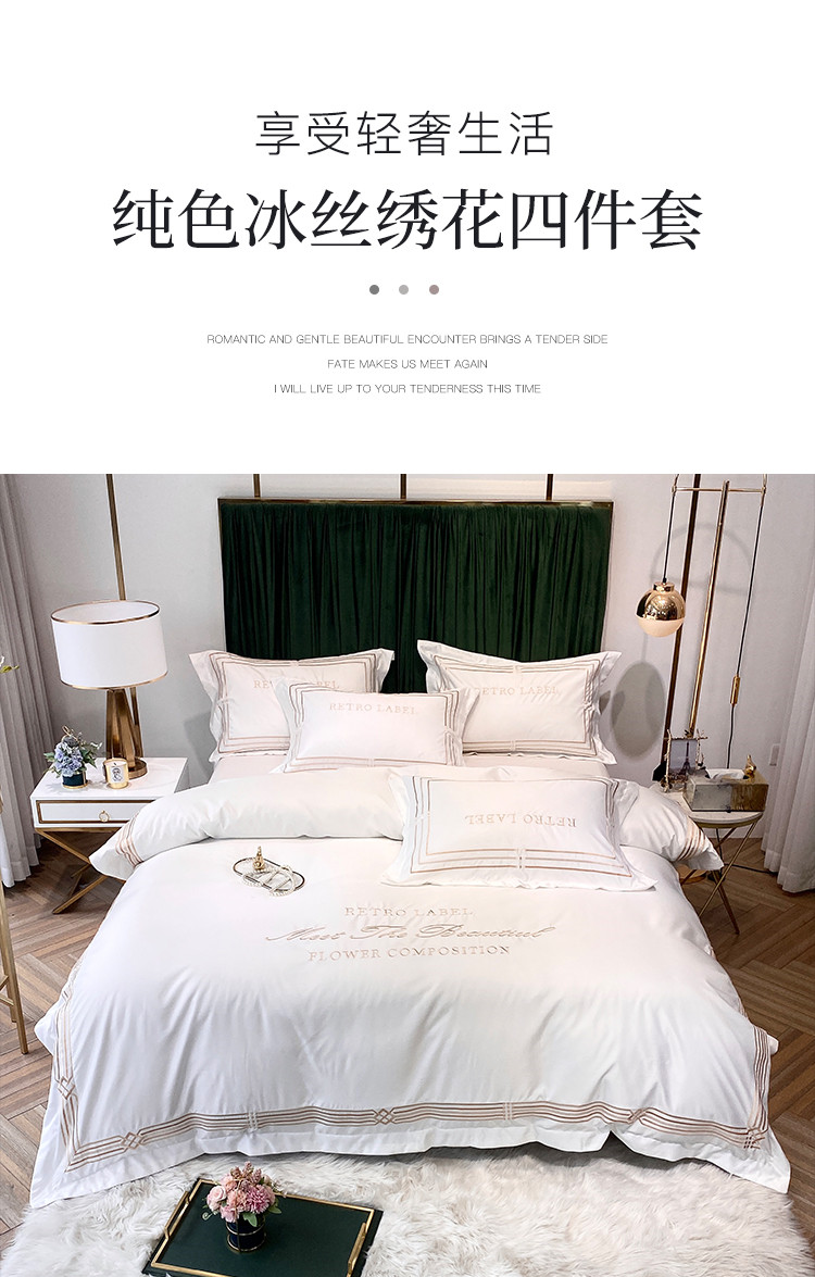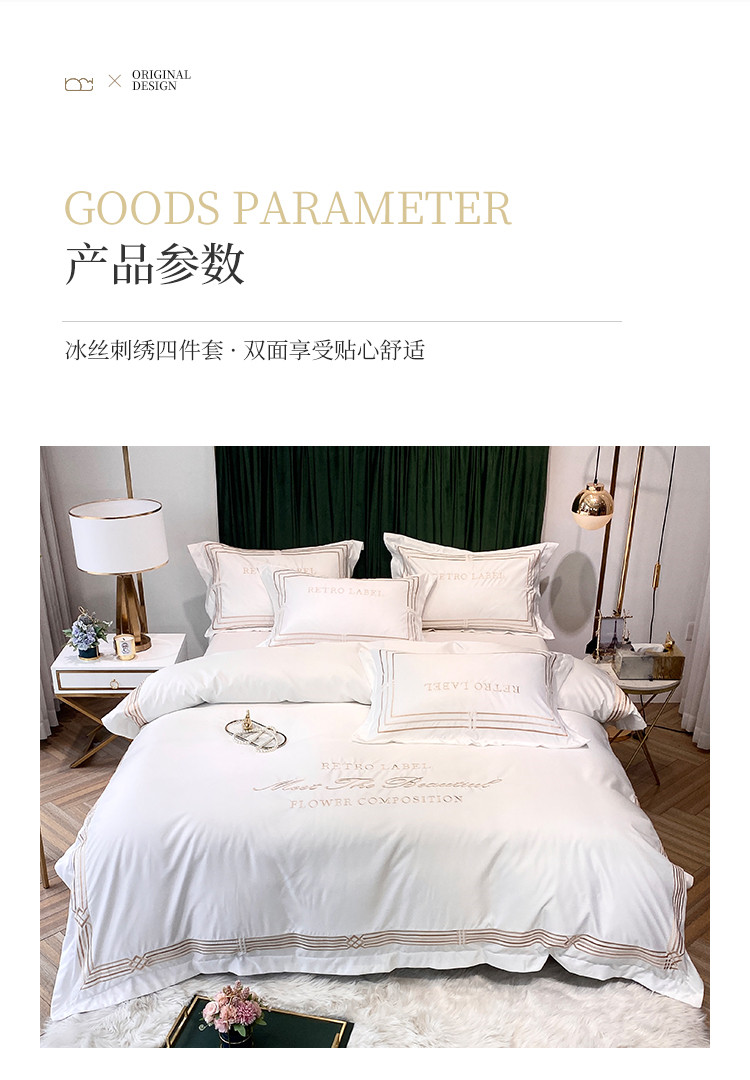 商品名称:理想家 2020新款纯色冰丝绣花四件套艾欧斯系列 本白